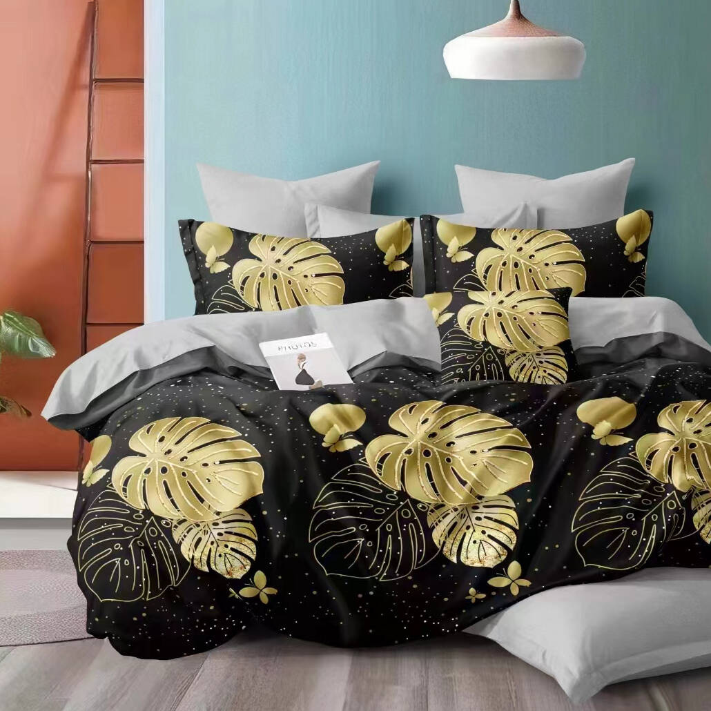 Pościel czarna w liście 200x220 3 el. Dagua C-108