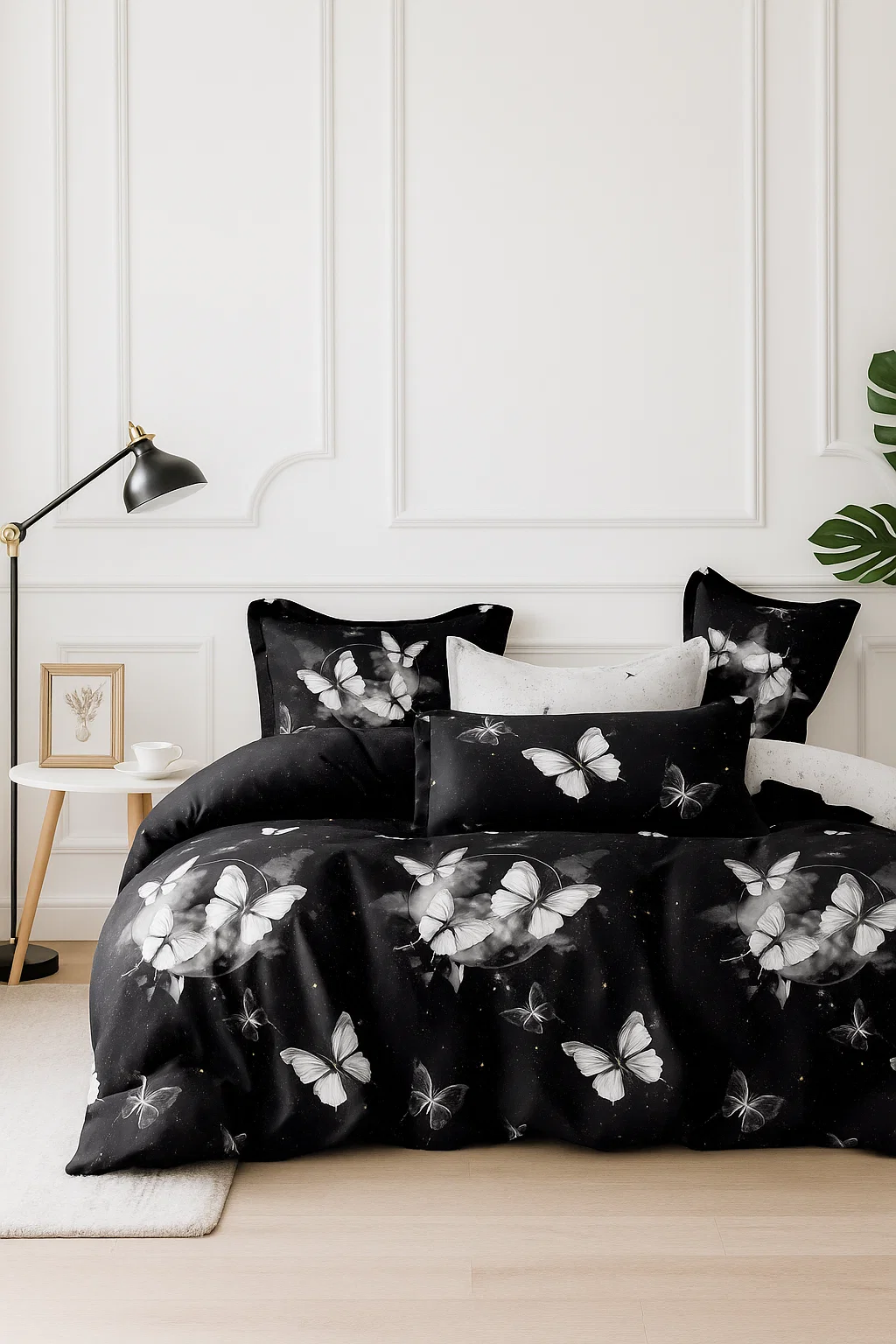 - Pościel w motyle, czarna, jasna szara
