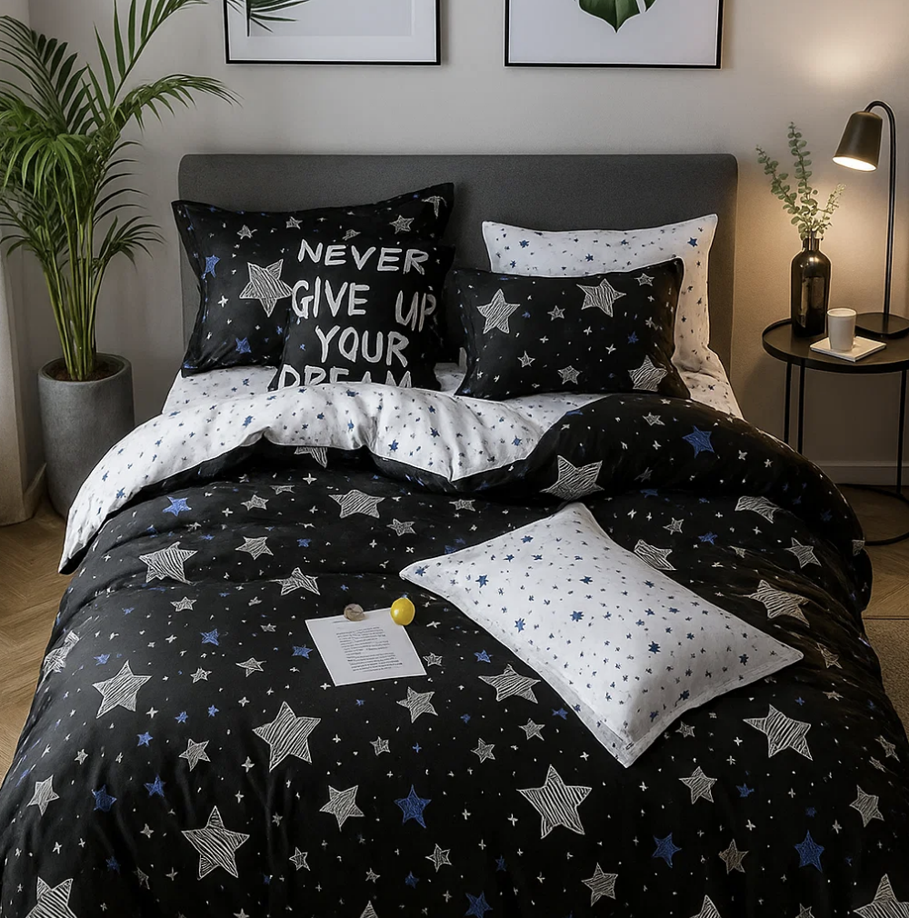 • Pościel w gwiazdki, kosmos, czarna, biała, niebieska