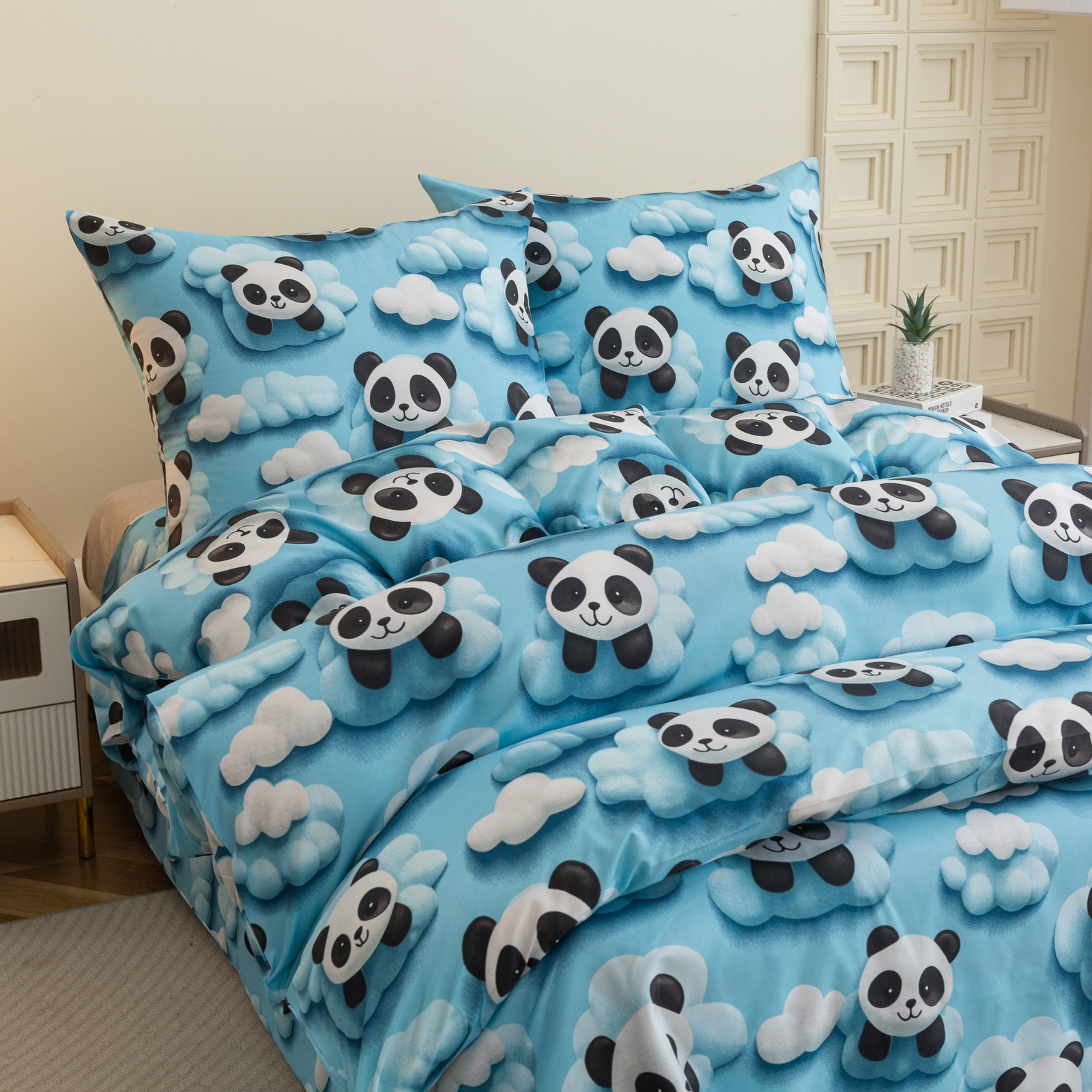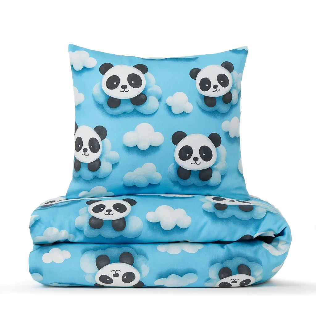 🌙 Komplet pościeli z mikrofibry – urocze pandy w chmurach, miękkość i bajkowy komfort