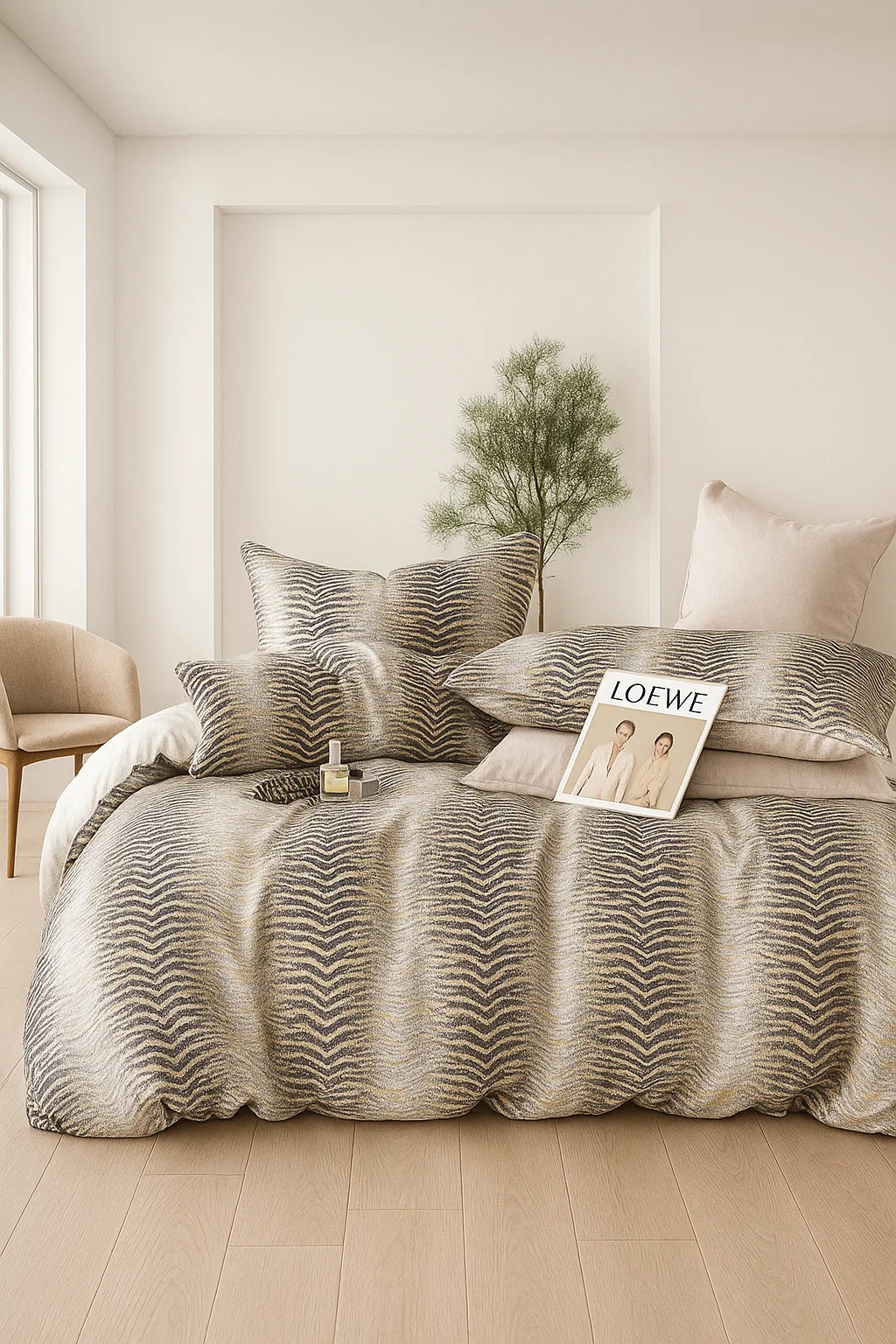 • Przepiękny komplet szaro-beżowej flanelowej pościeli geometrycznej w rozmiarze 200x220 cm! Pościel ciepła zimowa gruba, idealna na zimę