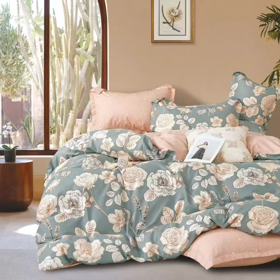 Pościel flanelowa gruba zimowa ciepła w kwiaty Casilda 200x220 4 el. A001