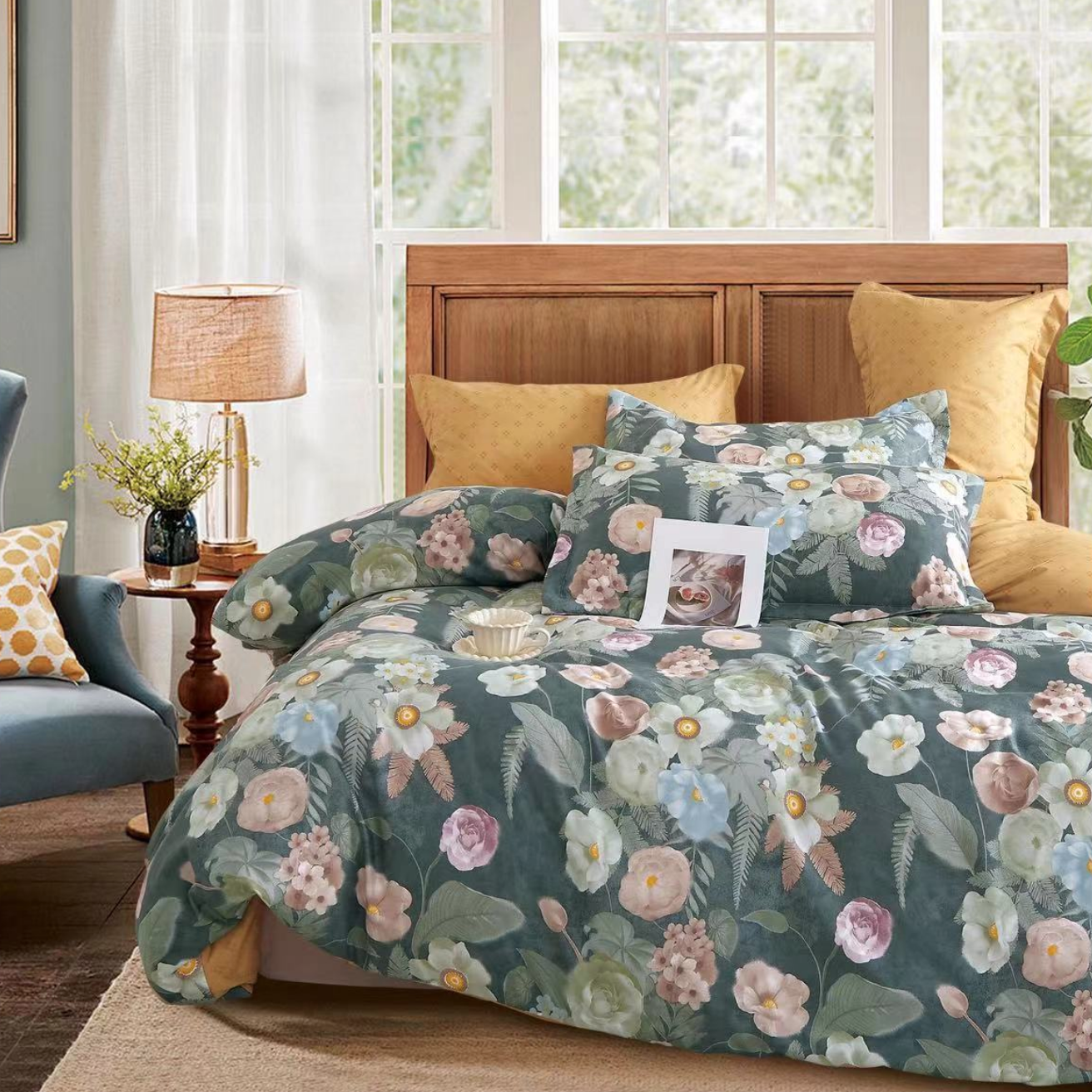 Pościel flanelowa gruba zimowa ciepła w kwiaty Concordia 200x220 4 el. A-053