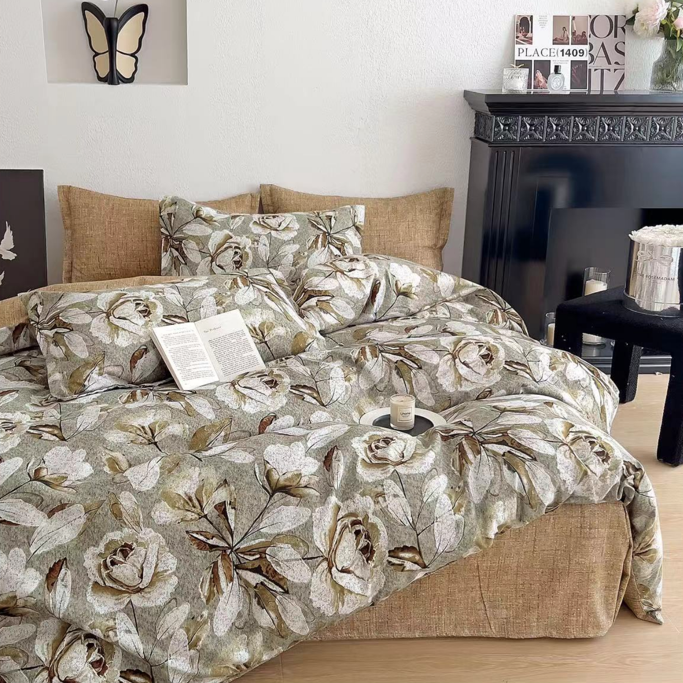 Pościel flanelowa gruba zimowa ciepła w kwiaty Orizaba 200x220 4 el. A-042