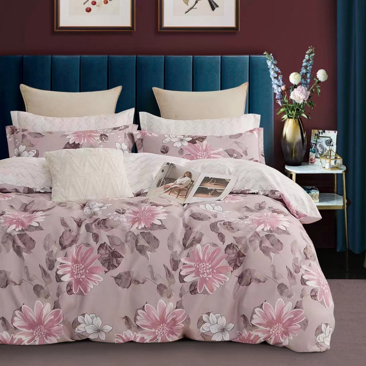 Pościel flanelowa gruba zimowa ciepła w kwiaty Rosalia 200x220 4 el. A-040