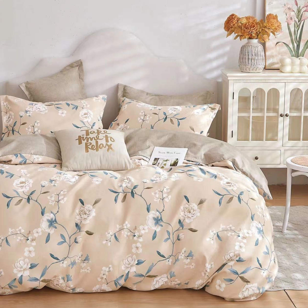 • Przepiękny komplet beżowej flanelowej pościeli w kwiaty w rozmiarze 200x220 cm! Pościel ciepła zimowa gruba, idealna na zimę