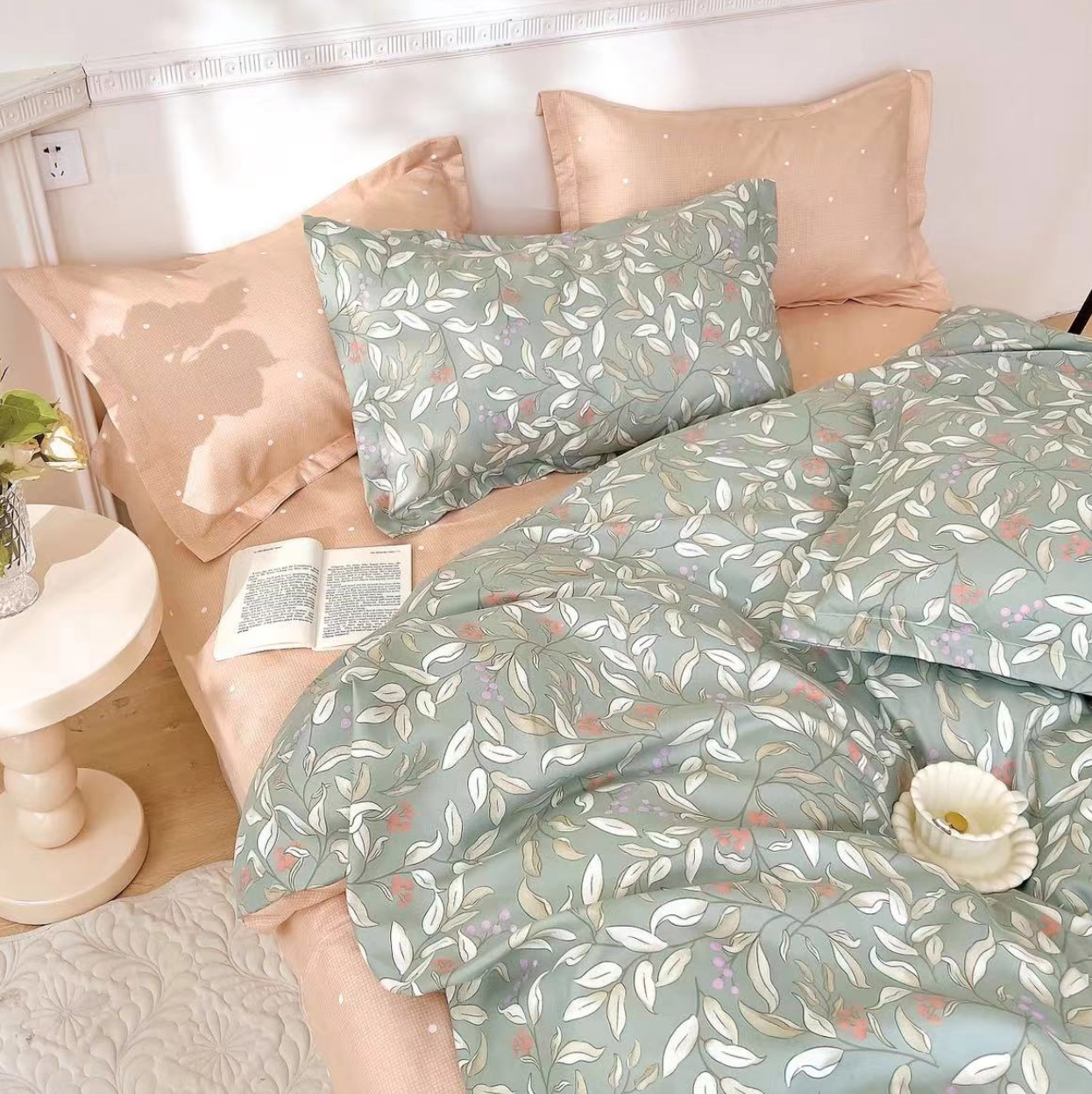 - Przepiękny komplet zielono-pomarańczowej flanelowej pościeli w liście w rozmiarze 200x220 cm! Pościel ciepła zimowa gruba, idealna na zimę