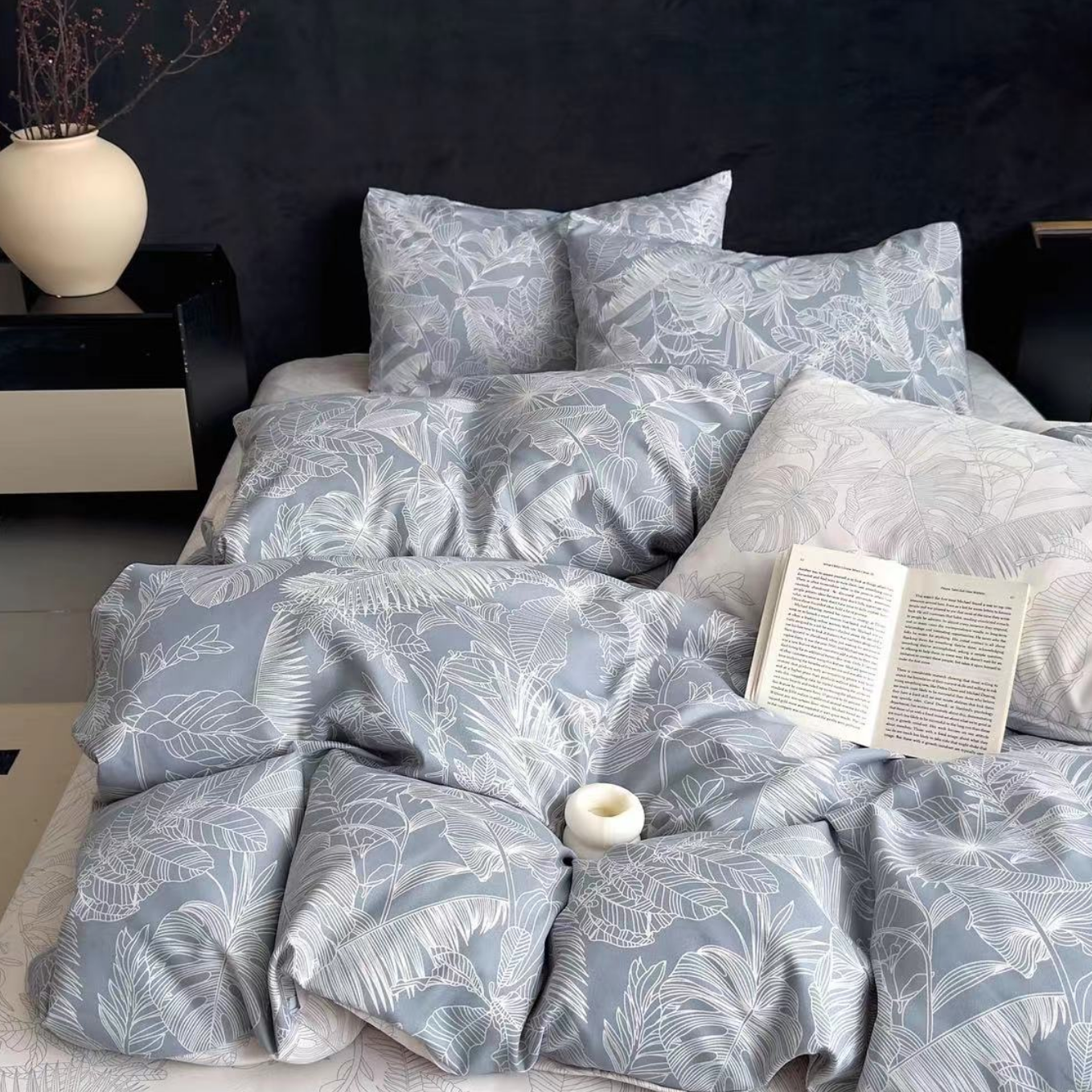 - Przepiękny komplet szaroniebieskiej flanelowej pościeli w liście w rozmiarze 200x220 cm! Pościel ciepła zimowa gruba, idealna na zimę
