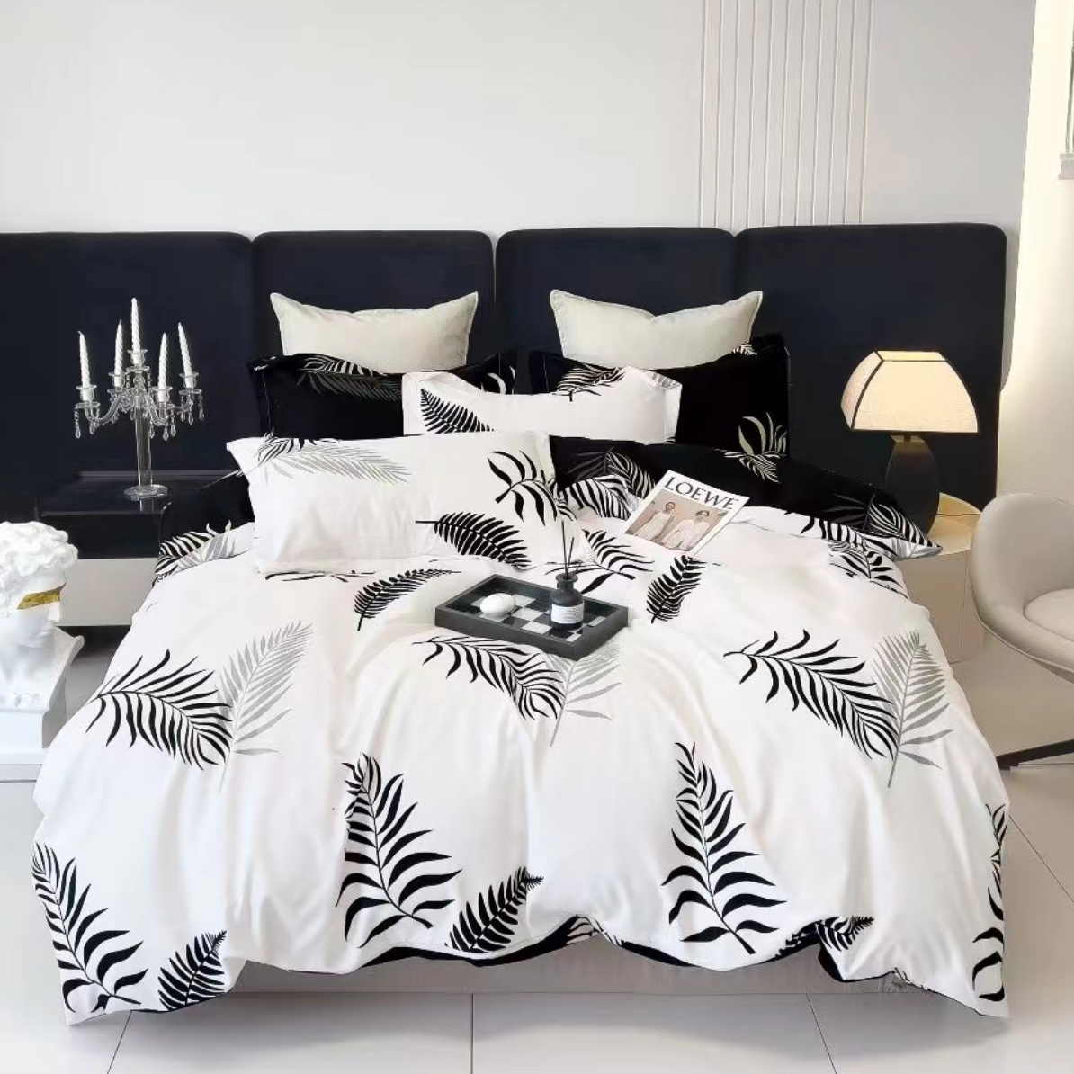 - Przepiękny komplet czarno-białej flanelowej pościeli w liście w rozmiarze 200x220 cm! Pościel ciepła zimowa gruba, idealna na zimę