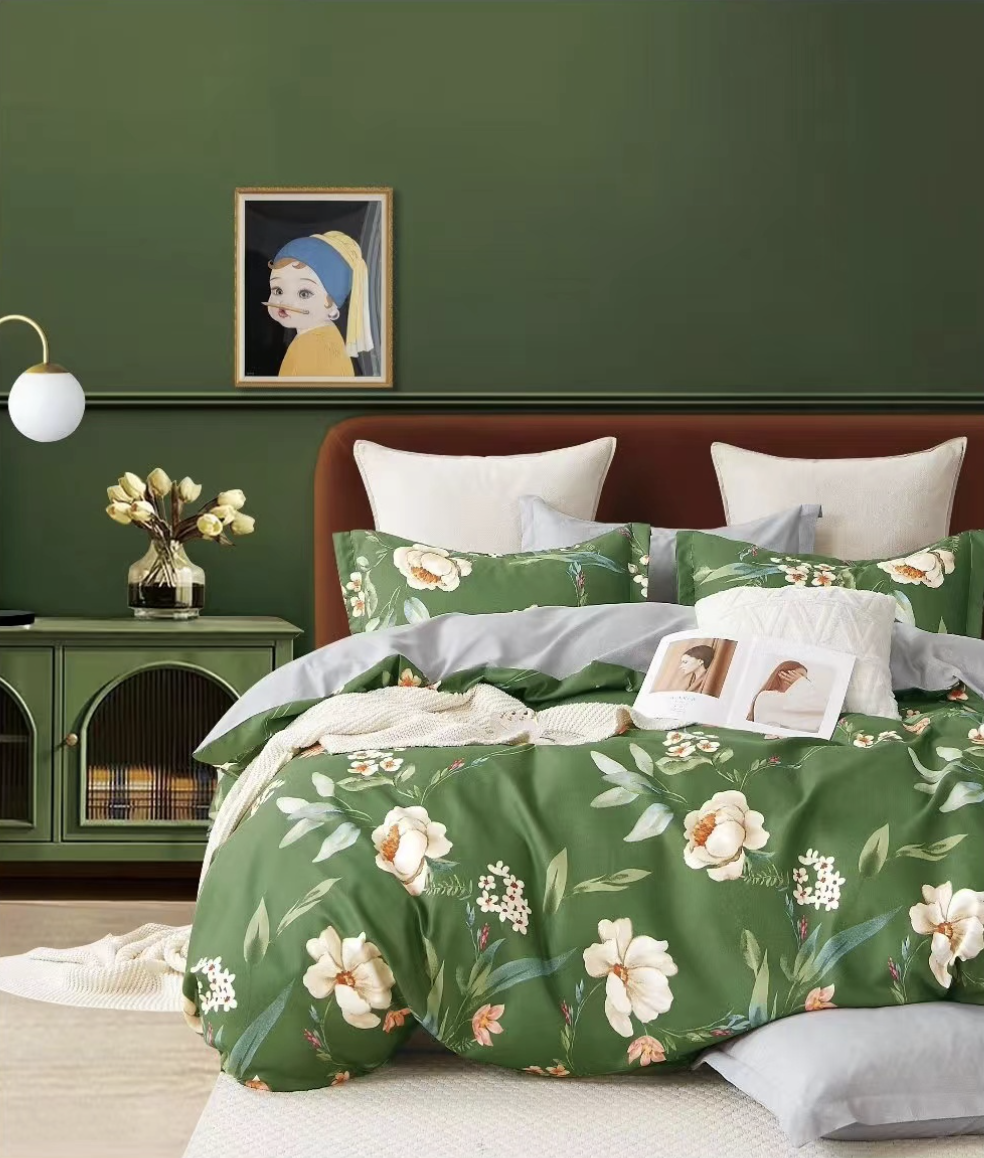Pościel flanelowa zielona w kwiaty Guarda 160x200 4 el. A018