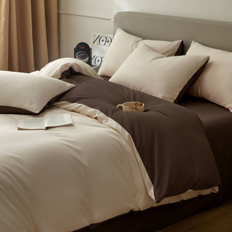 Pościel gładka dwukolorowa 160x200 4 el. kremowo-brązowa S-23