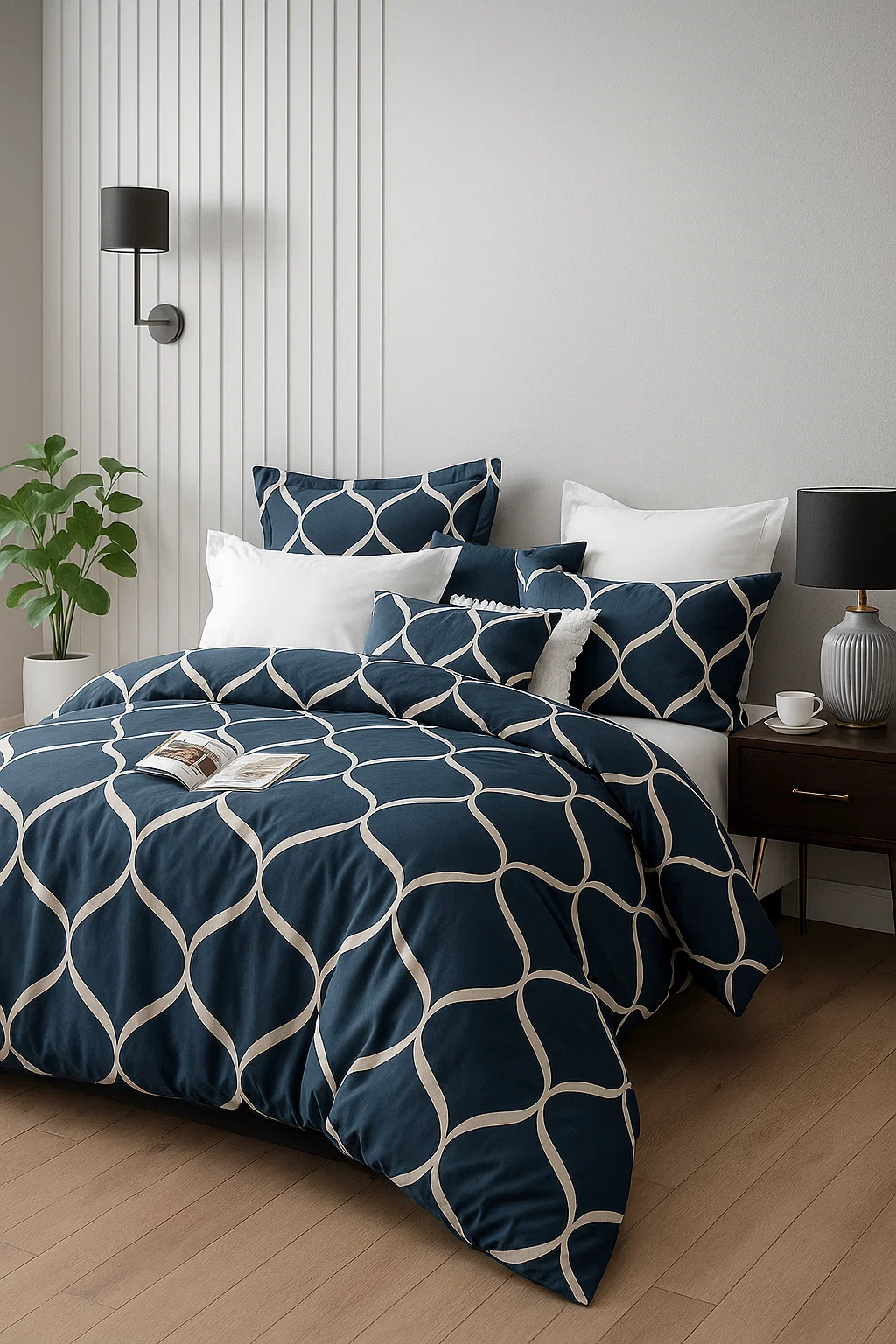 - Pościel geometryczna, granatowa