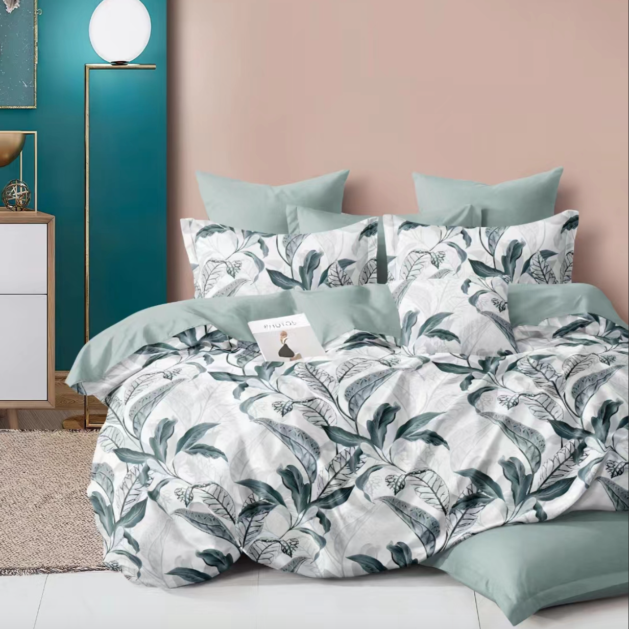 Pościel jasna szara w liście 160x200 3 el. Colima C-111