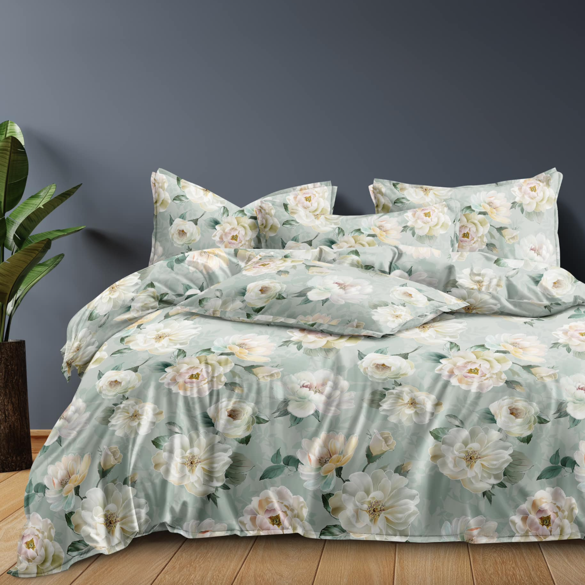 - Komplet szarej pościeli 160x200 skład: 100% mikrowłókno dwustronna poszewka na kołdrę i 2 x poszewka na poduszkę 70x80, prześcieradło 180x230, pościel w kwiaty, jasna zielona