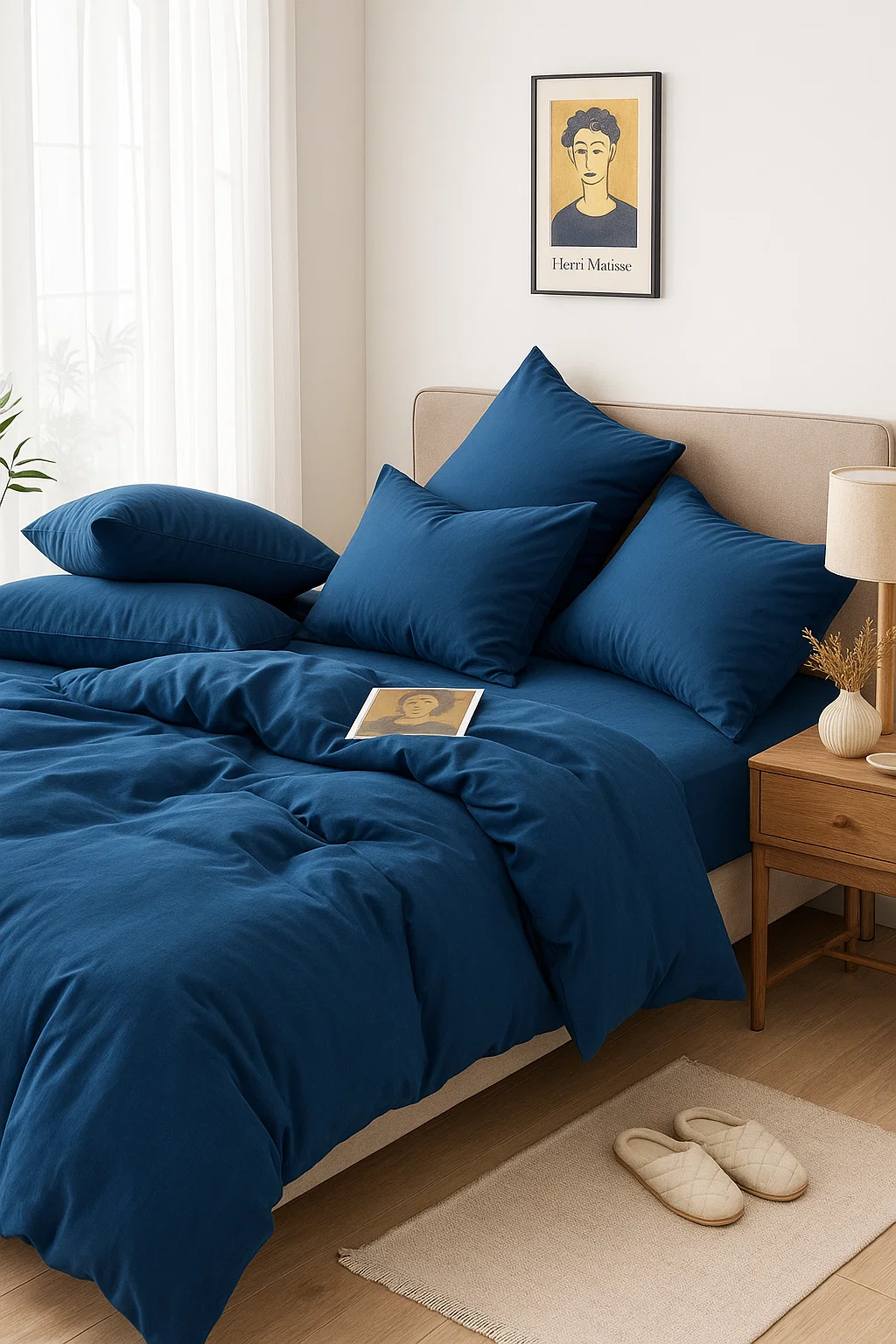 Pościel jednokolorowa gładka 160x200 3 el. niebieska granatowa S003