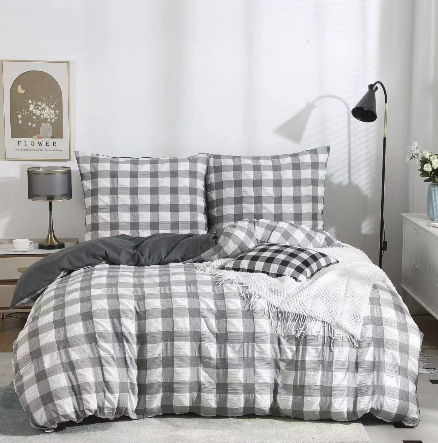 - Komplet szarej pościeli z pięknym, ozdobnym tłoczeniem w kratkę. Najnowszy trend do Twojej sypialni.