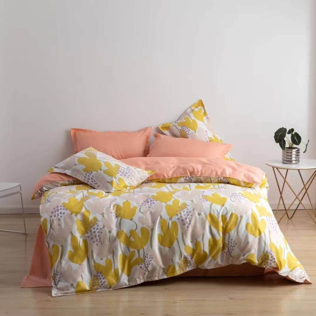 Pościel morelowa w kwiaty 160x200 3 el. Melinda