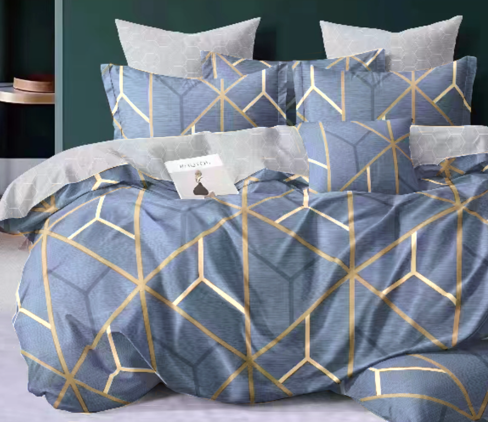 - Pościel geometryczna, niebieska, jasna szara