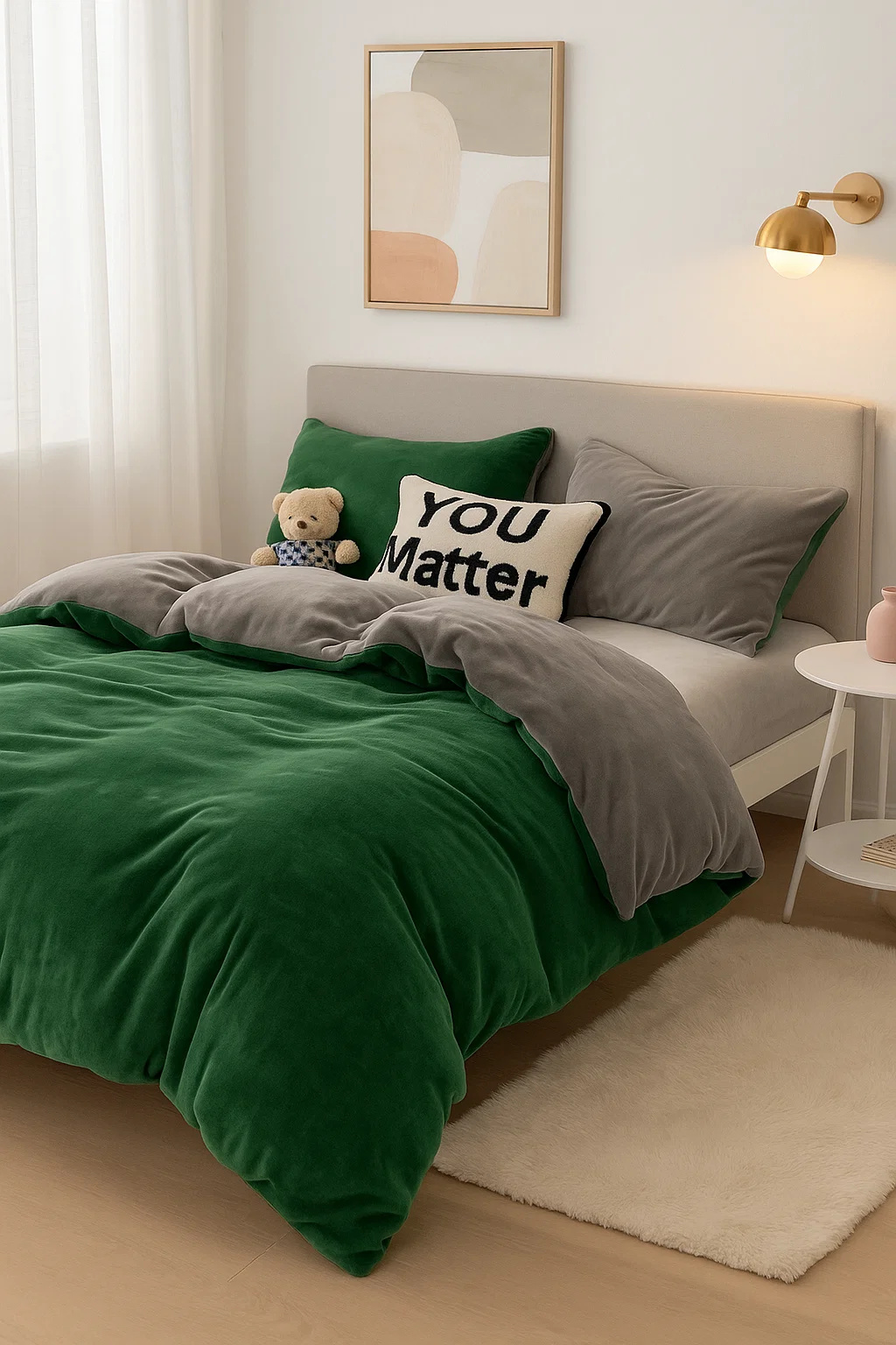 - Komplet pościeli ciepłej zimowej z pluszu, 160x200 polarowa, dwustronna poszewka na kołdrę i 2 x poszewka na poduszkę 70x80, pościel gładka, bez wzoru, dwukolorowa, butelkowa zielona, ciemna szara