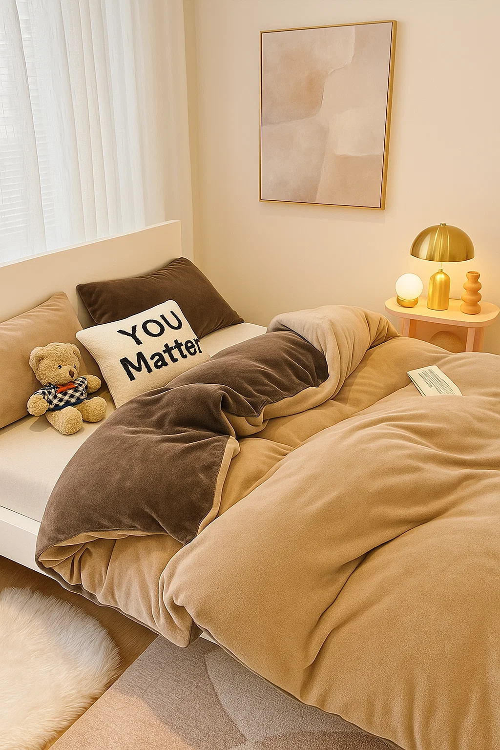 Pościel pluszowa welurowa zimowa miś gładka 160x200 3 el. jasna brązowa - ciemna brązowa