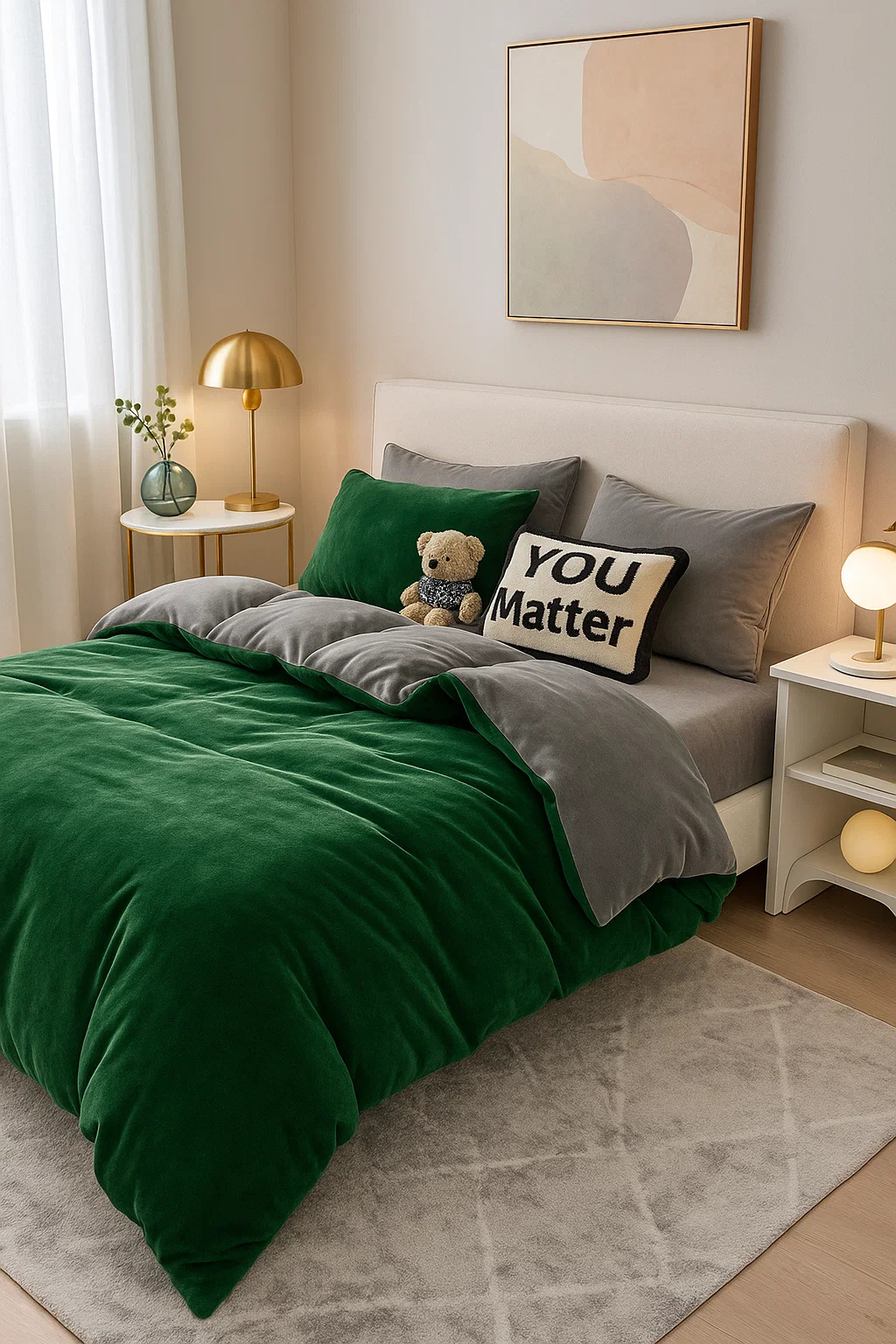 - Komplet pościeli ciepłej zimowej z pluszu, 200x220 polarowa, dwustronna poszewka na kołdrę i 2 x poszewka na poduszkę 70x80, pościel gładka, bez wzoru, dwukolorowa, butelkowa zielona, ciemna szara