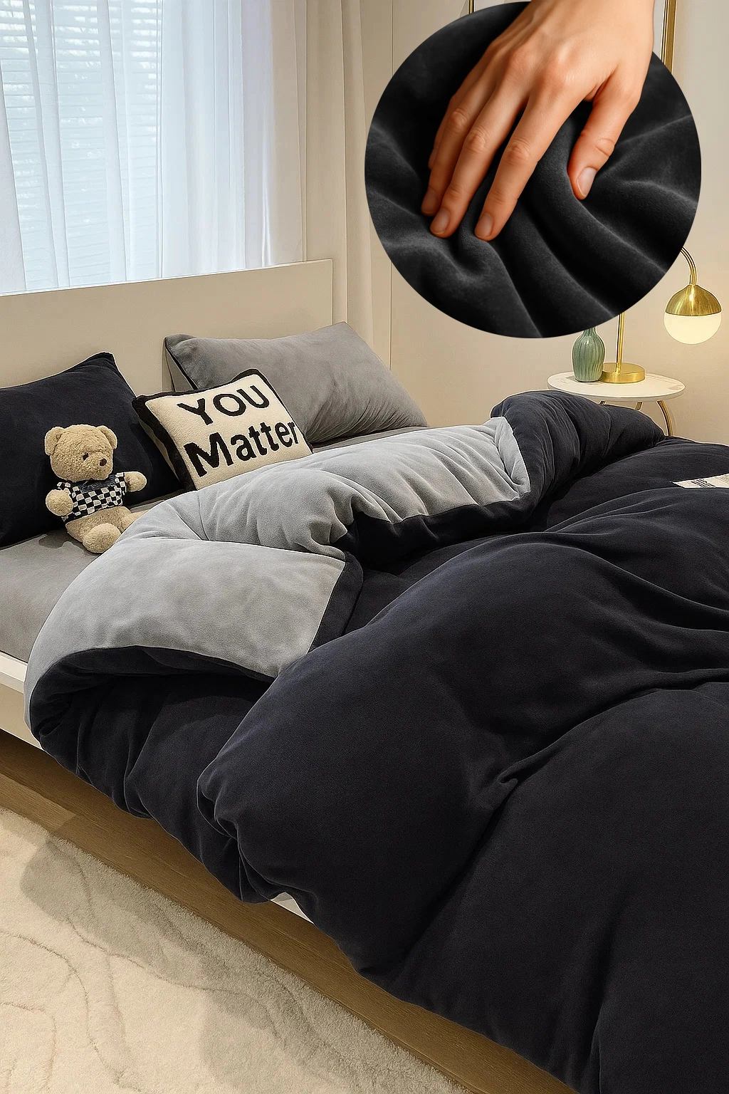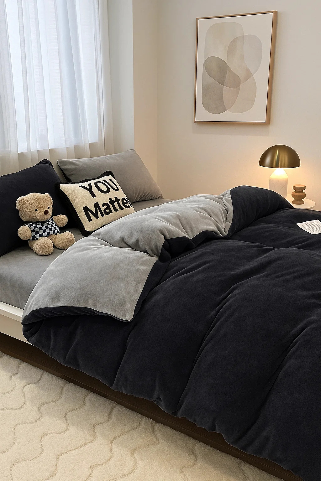 - Komplet pościeli ciepłej zimowej z pluszu, polarowa 200x220, dwustronna poszewka na kołdrę i 2 x poszewka na poduszkę 70x80, pościel gładka, bez wzoru, dwukolorowa, czarna, jasna szara