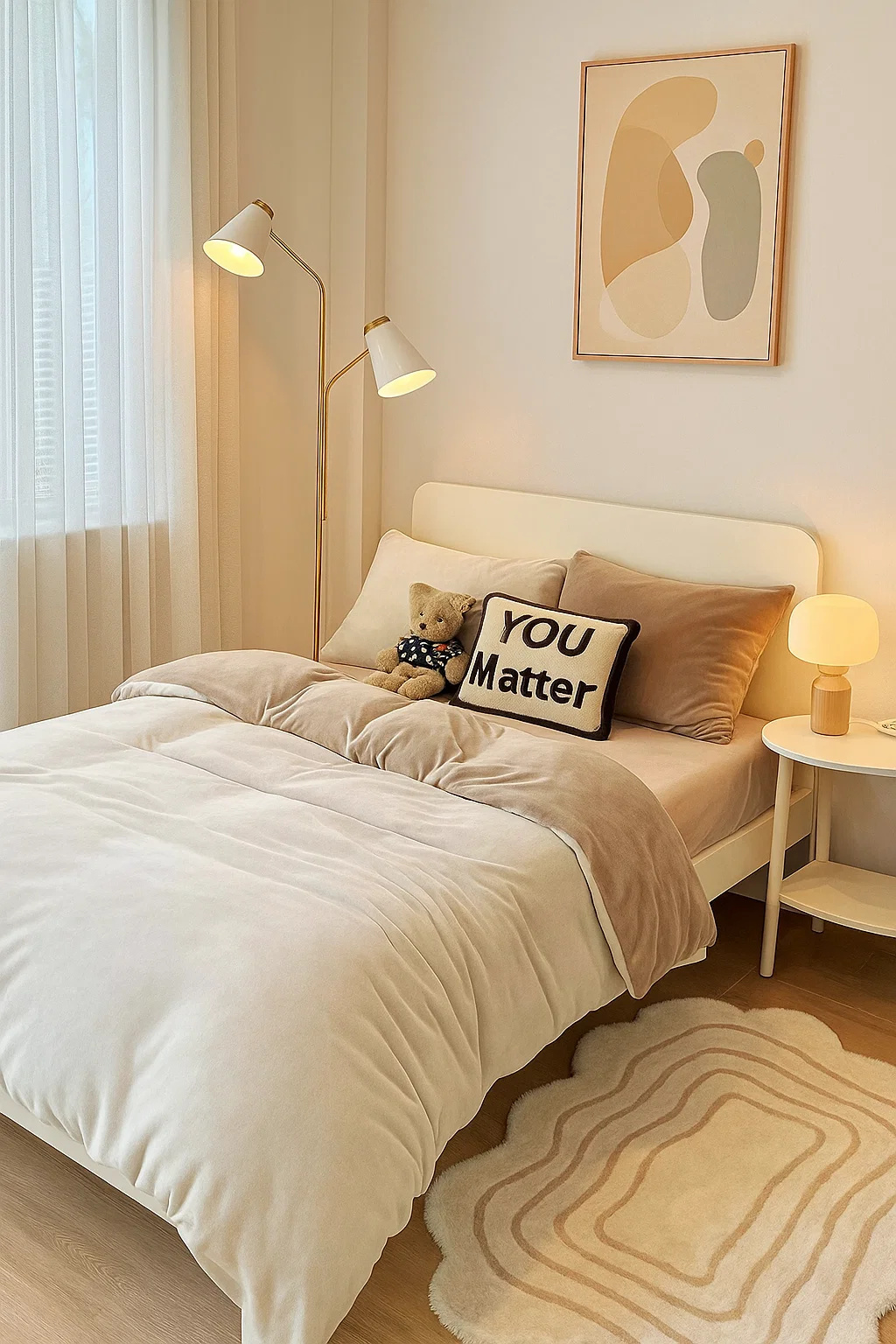 Pościel pluszowa welurowa zimowa miś gładka 200x220 4 el. kremowa - beżowa