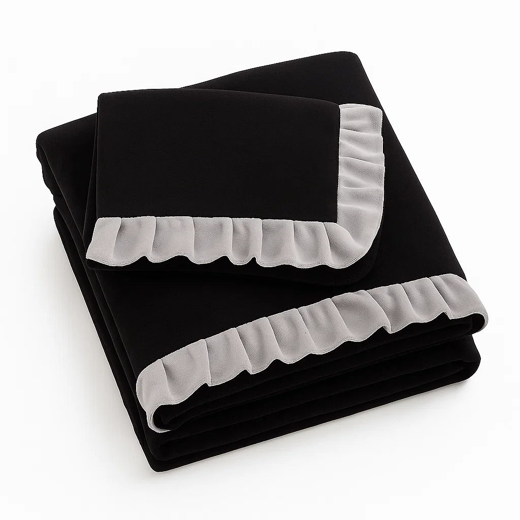 - Komplet pościeli ciepłej zimowej z pluszu, 160x200 polarowa, dwustronna poszewka na kołdrę i 2 x poszewka na poduszkę 70x80, pościel z falbanką, dwukolorowa, czarna, jasna szara