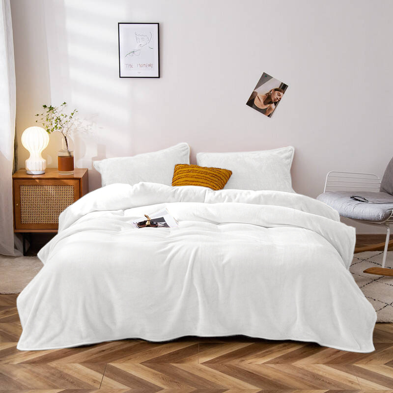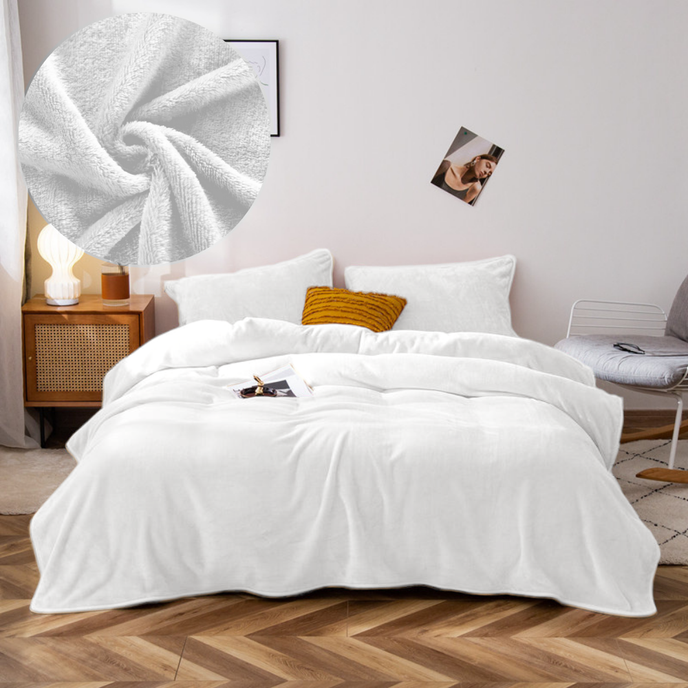 - Komplet pościeli ciepłej zimowej z pluszu, 160x200 polarowa, dwustronna poszewka na kołdrę i 2 x poszewka na poduszkę 70x80, pościel gładka, bez wzoru, biała