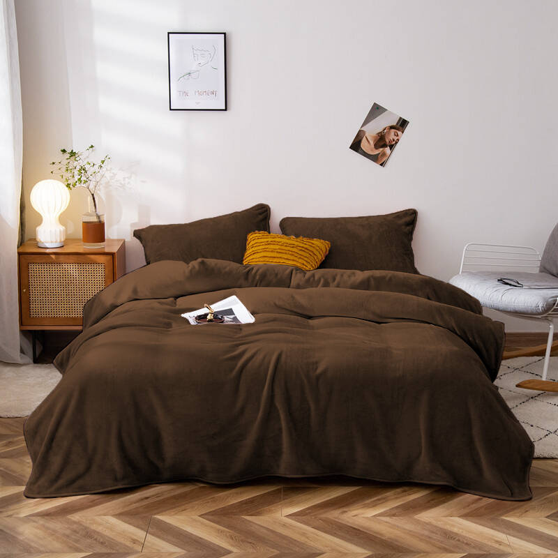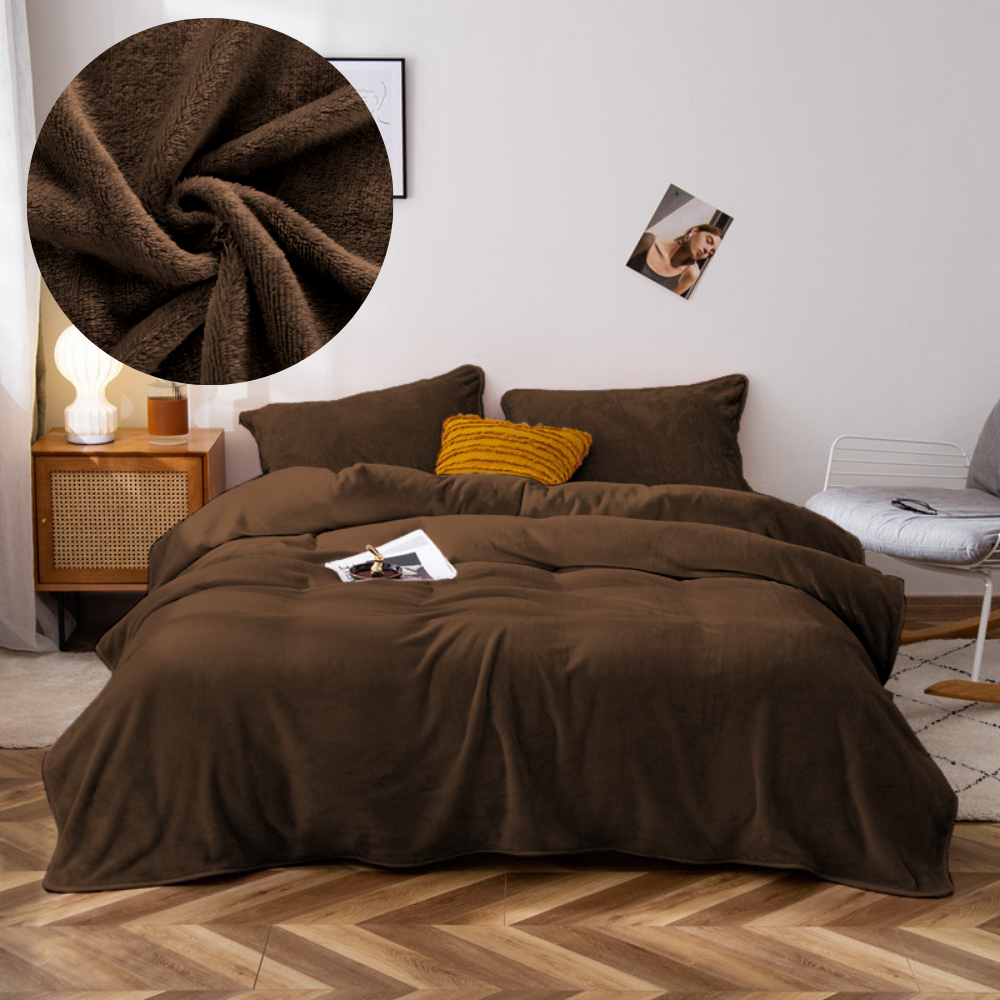 - Komplet pościeli ciepłej zimowej z pluszu, polarowa 160x200, dwustronna poszewka na kołdrę i 2 x poszewka na poduszkę 70x80, pościel gładka, bez wzoru, brązowa