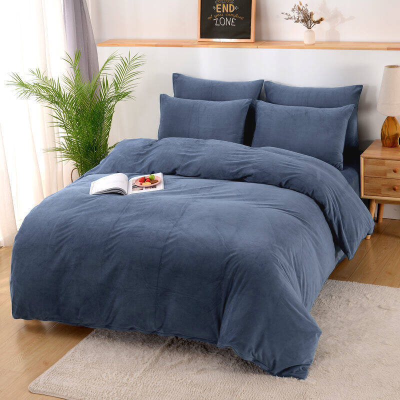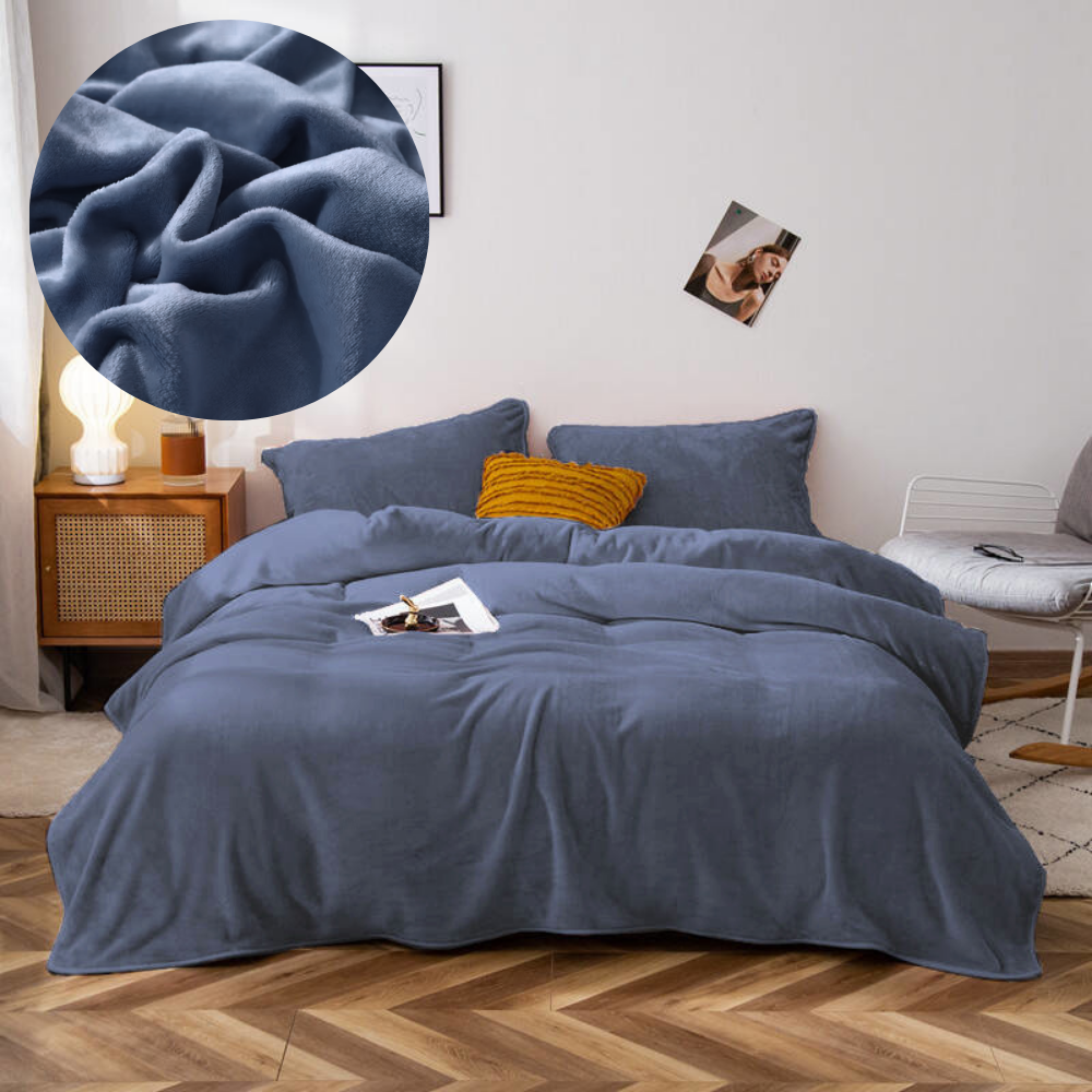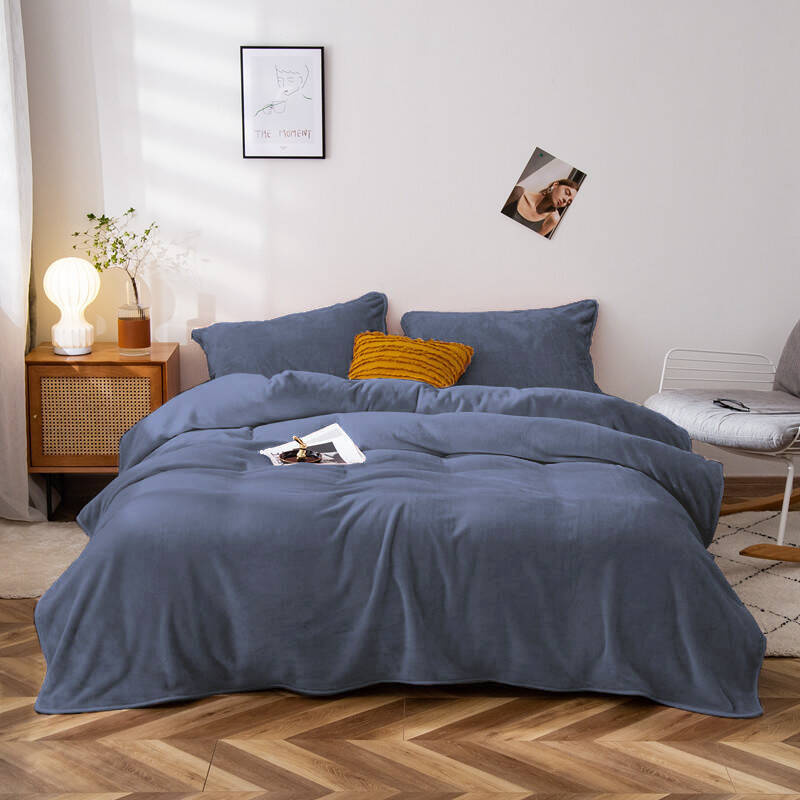 • Komplet pościeli ciepłej zimowej z pluszu, polarowa 160x200, dwustronna poszewka na kołdrę i 2 x poszewka na poduszkę 70x80, pościel gładka, bez wzoru, niebieska, szara