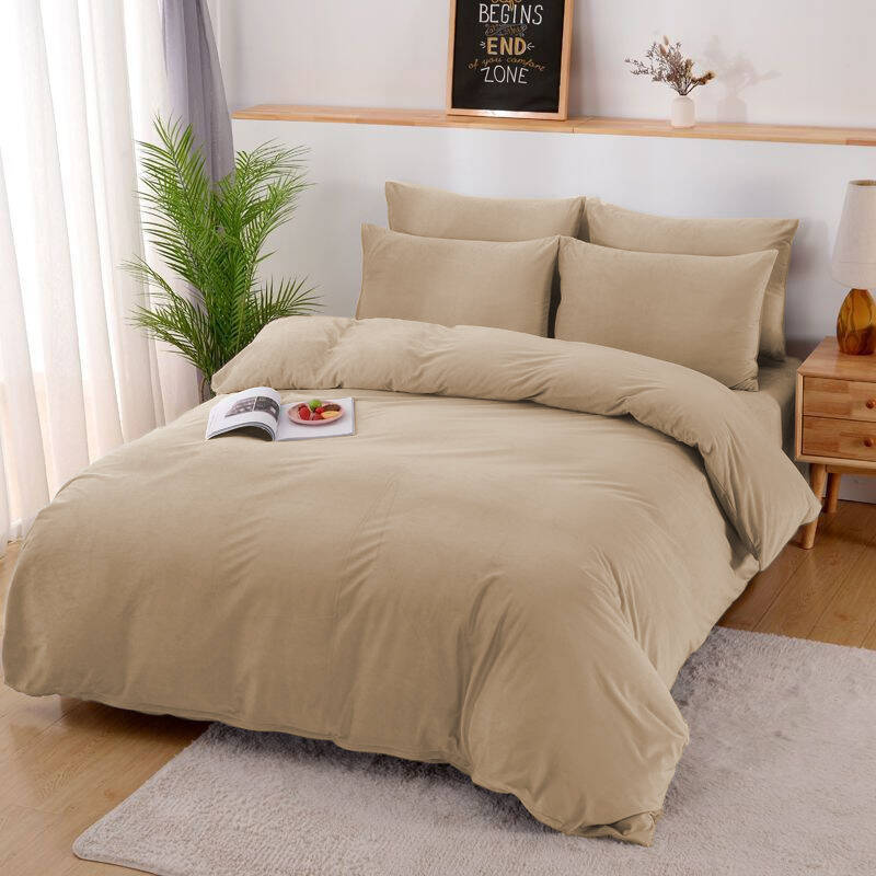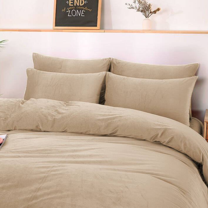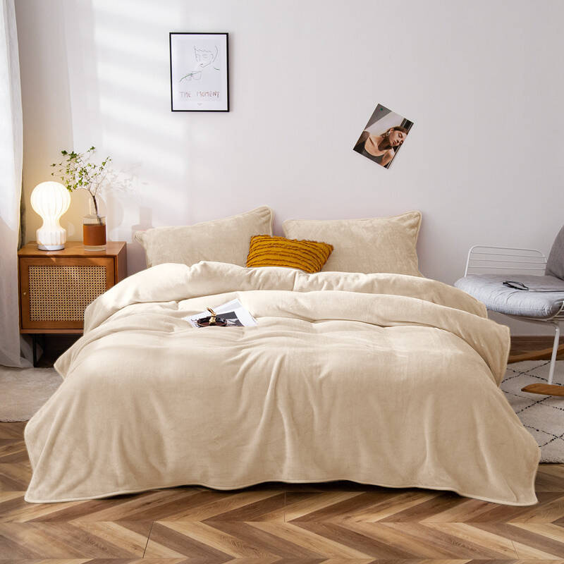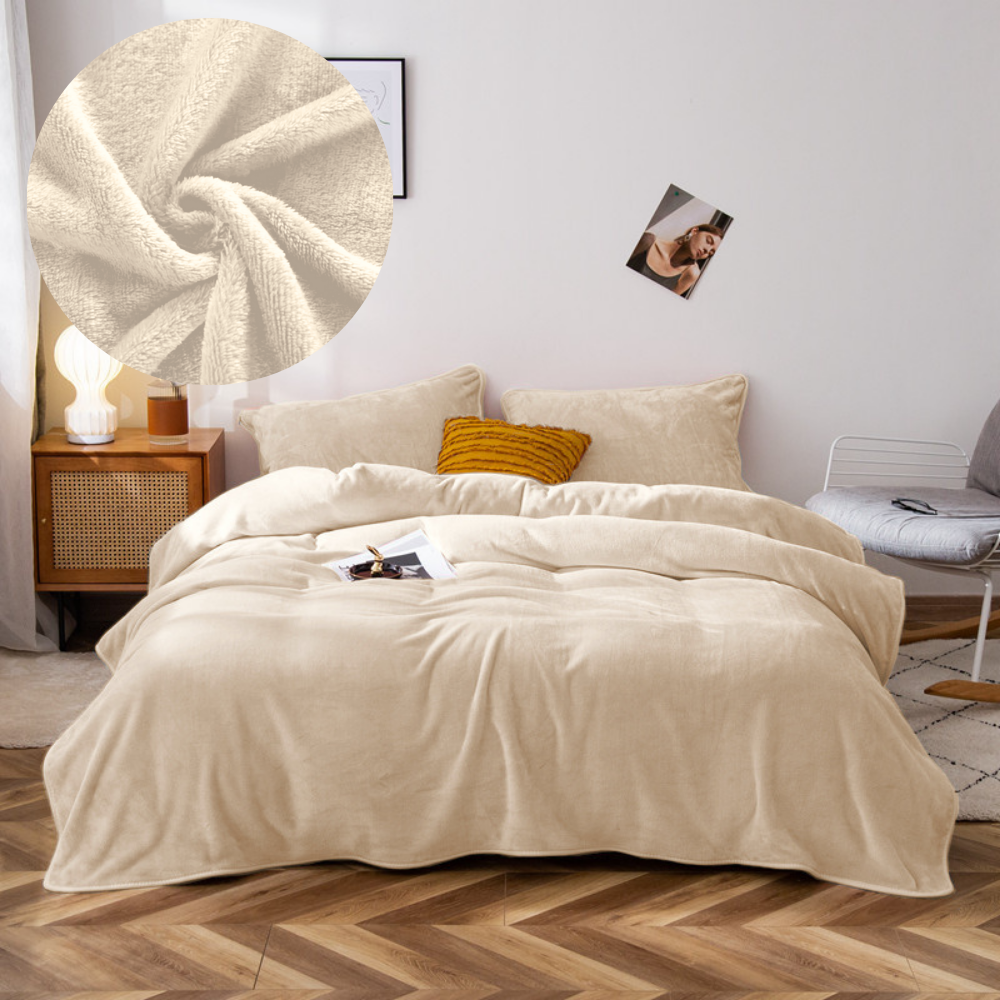 - Komplet pościeli ciepłej zimowej z pluszu, 200x220 polarowa, dwustronna poszewka na kołdrę i 2 x poszewka na poduszkę 70x80, pościel gładka, bez wzoru, beżowa