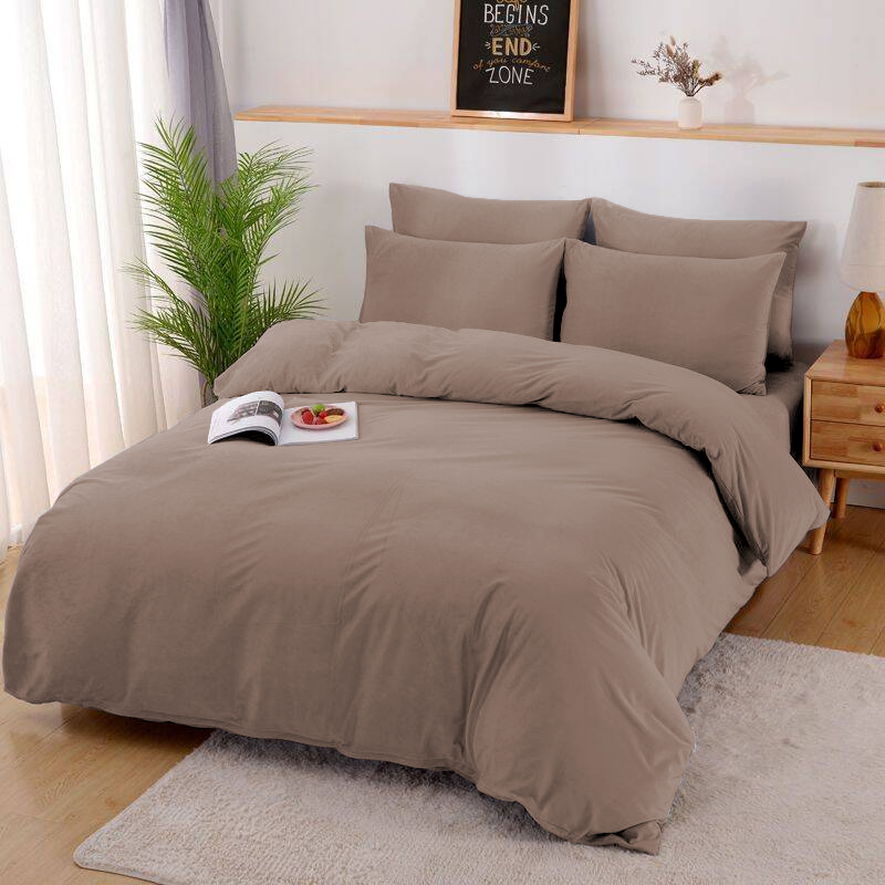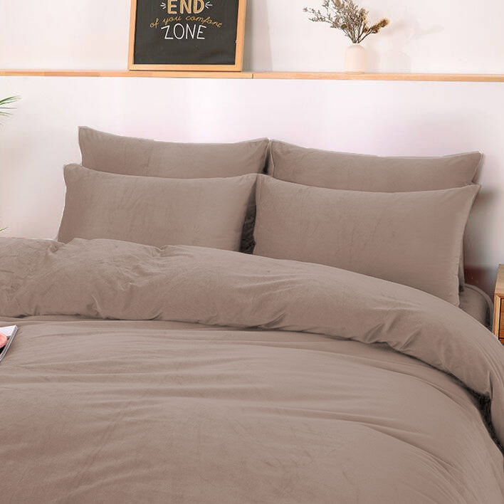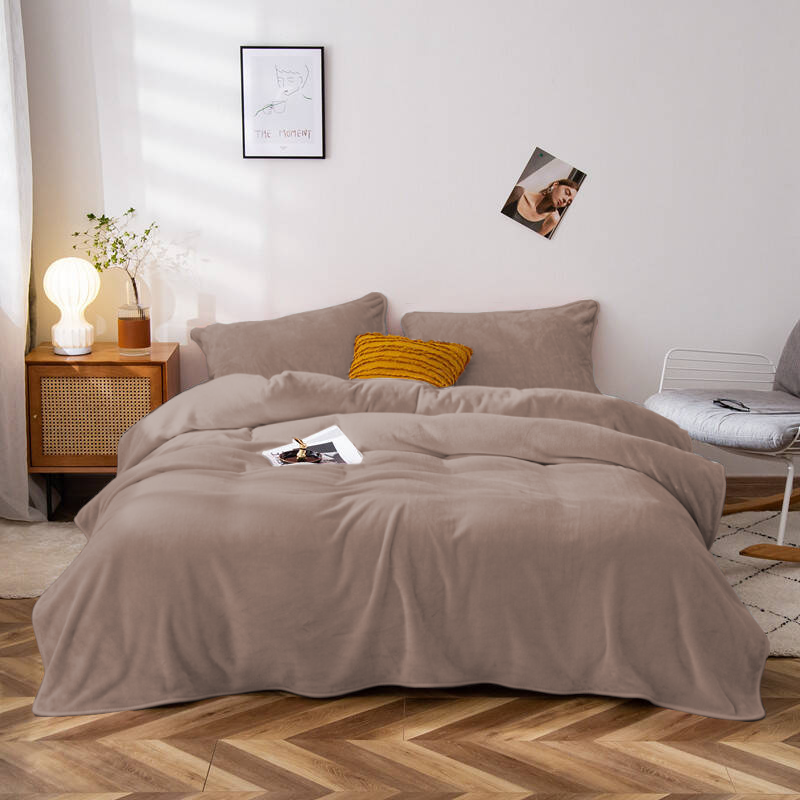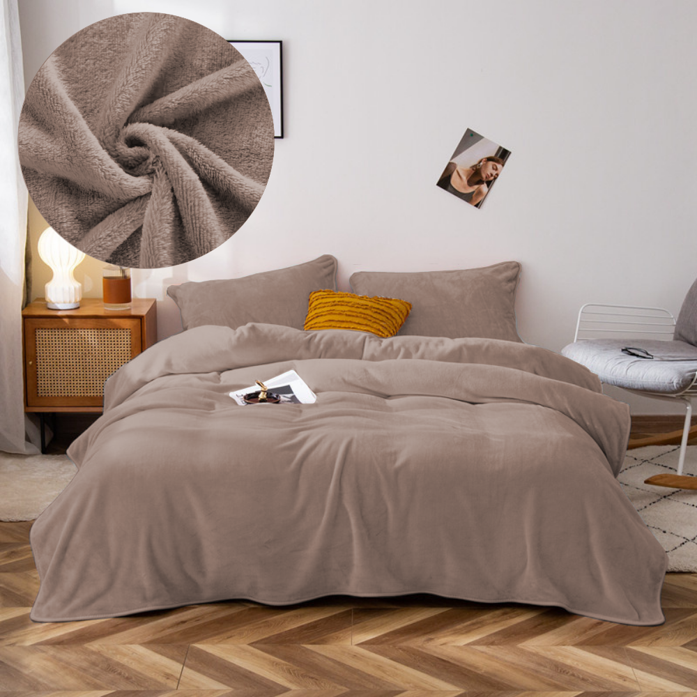 - Komplet pościeli ciepłej zimowej z pluszu, 200x220 polarowa, dwustronna poszewka na kołdrę i 2 x poszewka na poduszkę 70x80, pościel gładka, bez wzoru, ciemna beżowa
