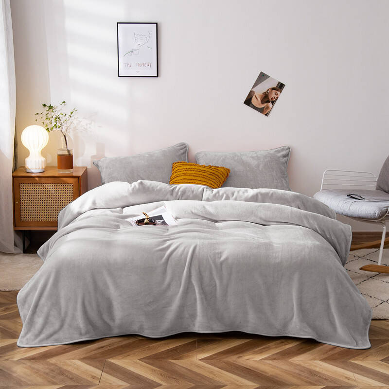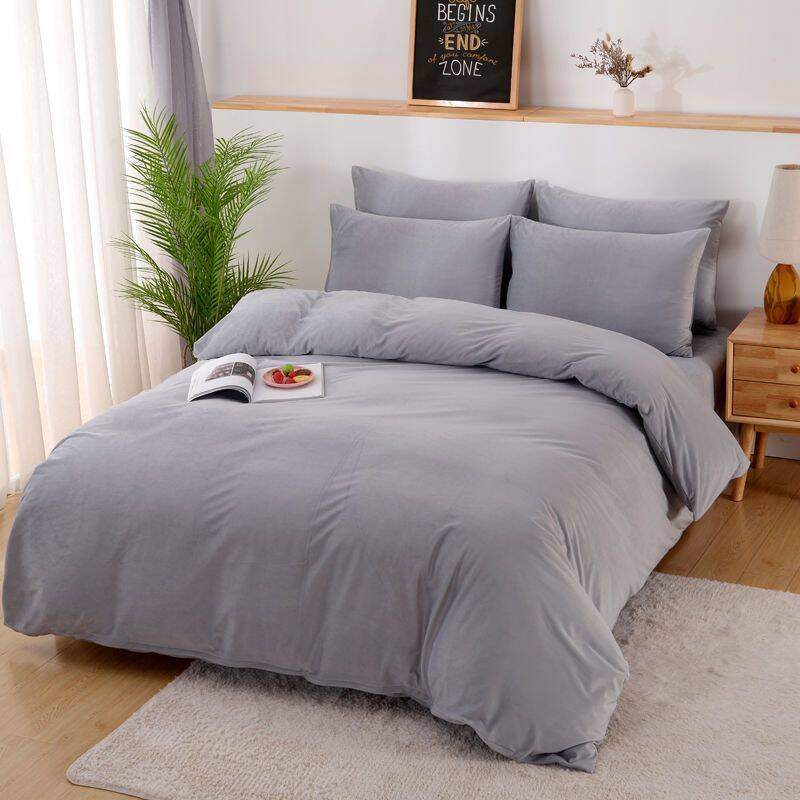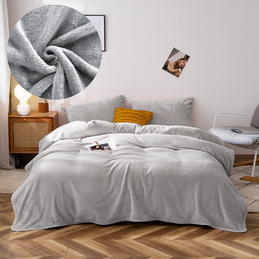 - Komplet pościeli ciepłej zimowej z pluszu, polarowa 200x220, dwustronna poszewka na kołdrę i 2 x poszewka na poduszkę 70x80, pościel gładka, bez wzoru, jasna szara