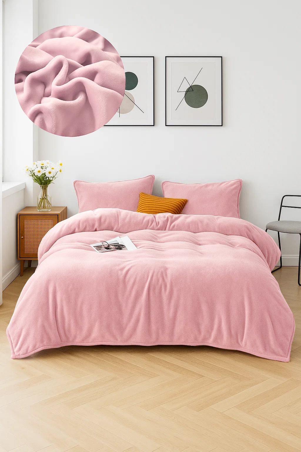 - Komplet pościeli ciepłej zimowej z pluszu, polarowa 200x220, dwustronna poszewka na kołdrę i 2 x poszewka na poduszkę 70x80, pościel gładka, bez wzoru, różowa