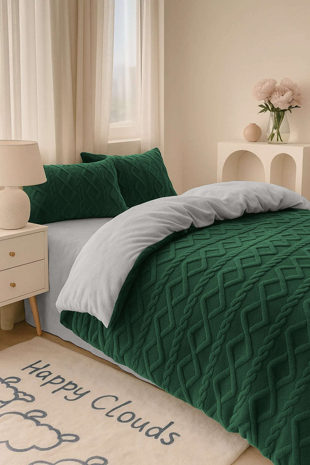 - Komplet pościeli ciepłej zimowej z pluszu, polarowa 160x200, dwustronna poszewka na kołdrę i 2 x poszewka na poduszkę 70x80, pościel ze wzorem 3D, sweterkowa, butelkowa zielona, jasna szara