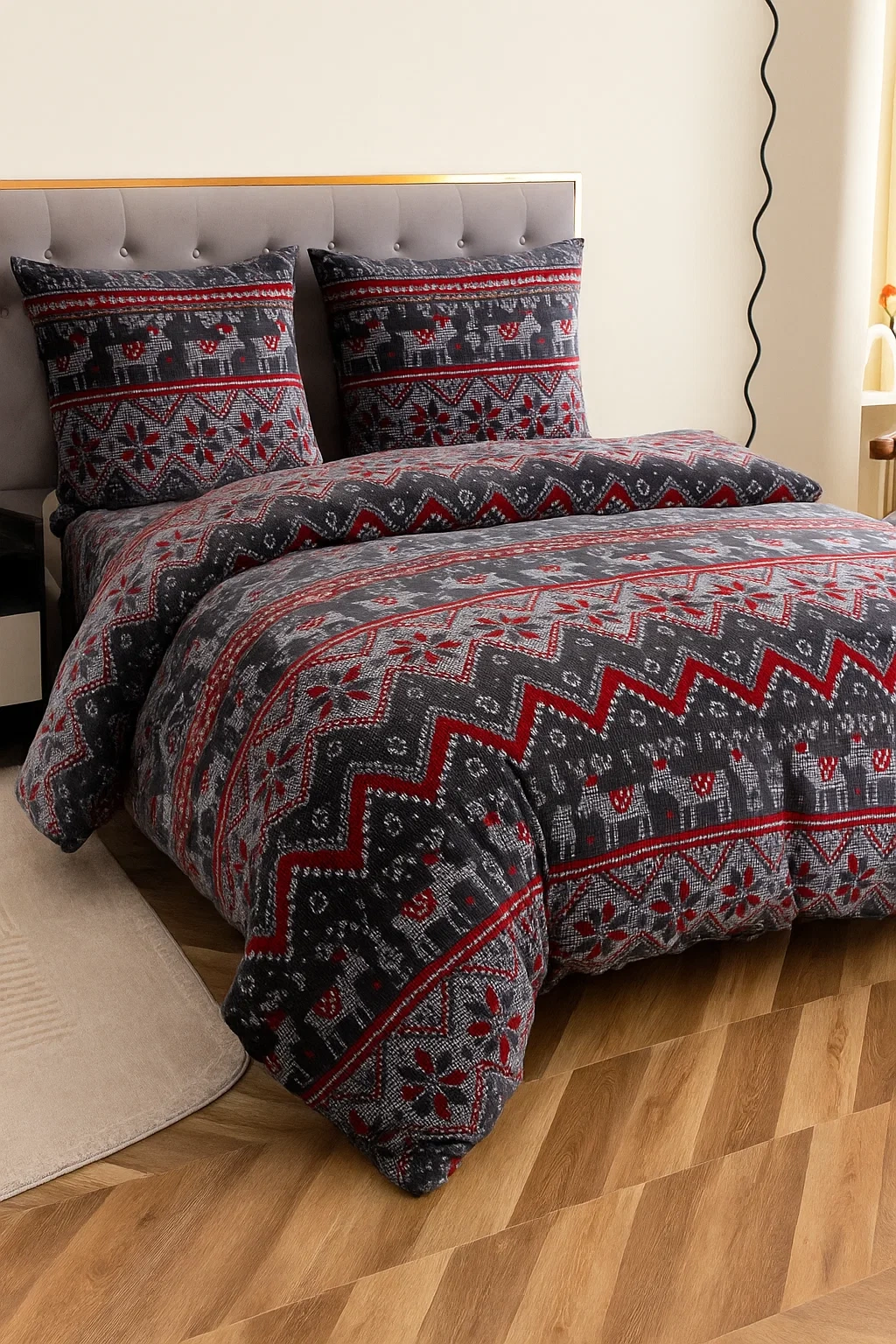 Otul się miękkością i ciepłem w świątecznym stylu! Nasz komplet pościeli pluszowej wykonany z wysokiej jakości mikrofibry typu plusz (materiał miś, polar) to idealny wybór na chłodne, zimowe noce. Delikatny, puszysty materiał doskonale ogrzewa i zapewnia wyjątkowy komfort snu, a jednocześnie jest przyjemny w dotyku i nie wymaga prasowania – idealny dla osób ceniących wygodę i funkcjonalność.