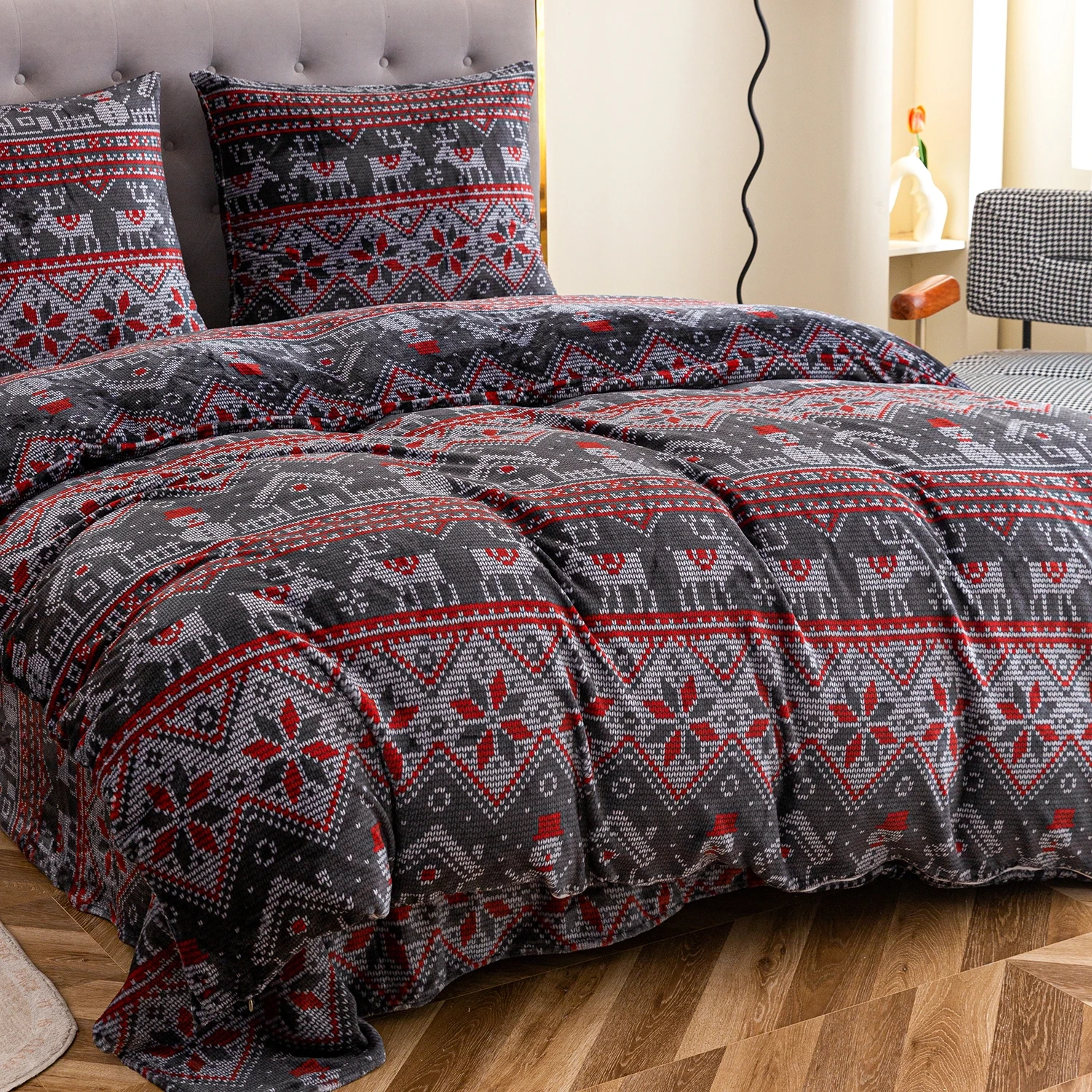 - Komplet pościeli ciepłej zimowej z pluszu, polarowa 200x220, dwustronna poszewka na kołdrę i 2 x poszewka na poduszkę 70x80, pościel w wzór norweski, skandynawski, swetrowy