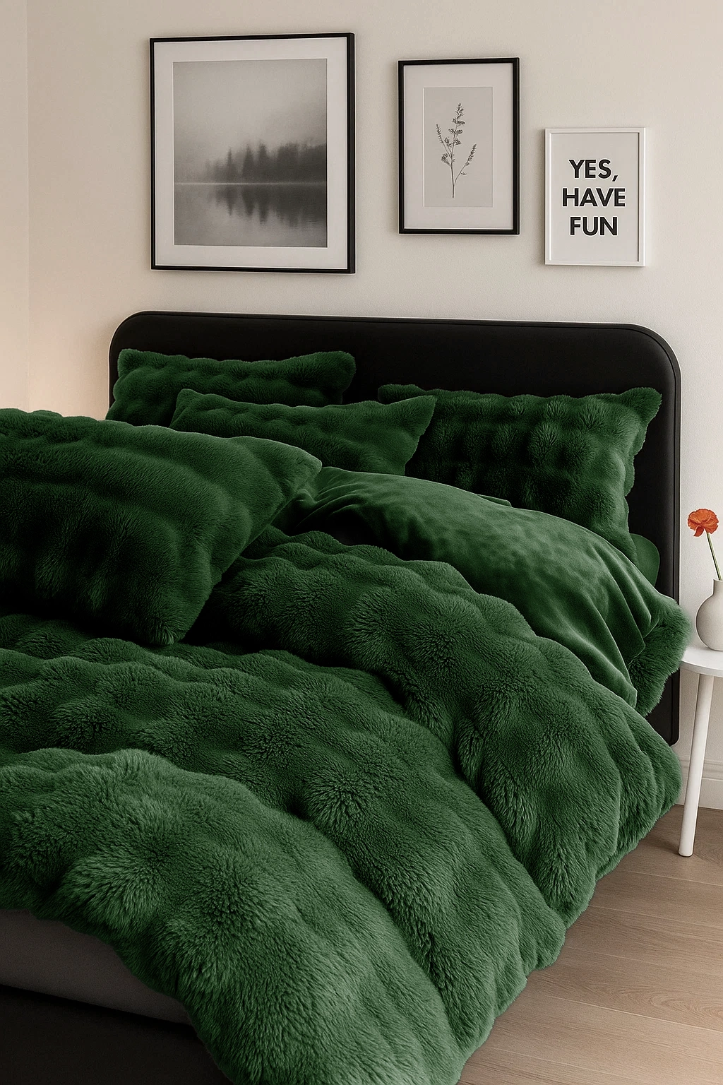 - Komplet pościeli ciepłej zimowej z pluszu, 200x220 polarowa, dwustronna poszewka na kołdrę i 2 x poszewka na poduszkę 70x80, pościel wytłaczana z wielowymiarowym wzorem bąbelkowym, duże puchate bąble, butelkowa zielona