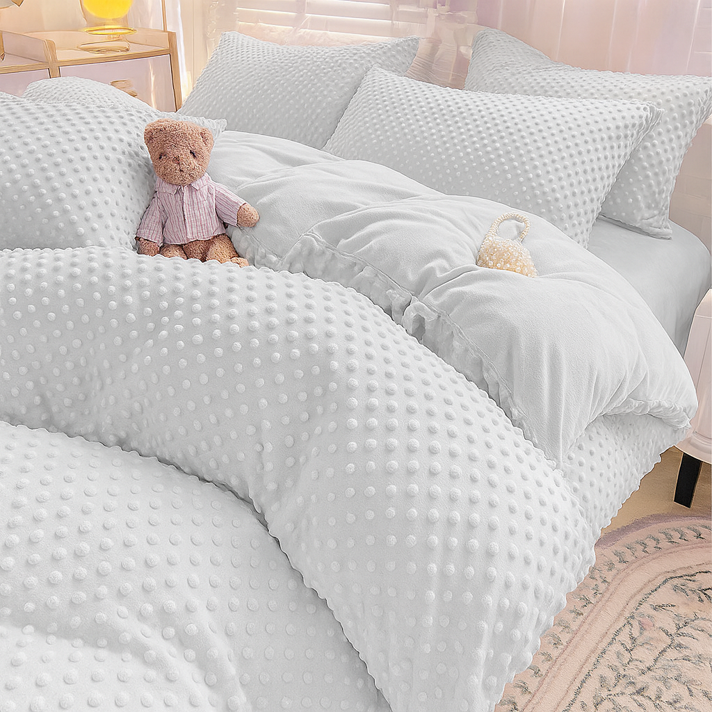 - Komplet pościeli ciepłej zimowej z pluszu, polarowa 160x200, dwustronna poszewka na kołdrę i 2 x poszewka na poduszkę 70x80, pościel ze zdobieniem 3D, w kropki, biała