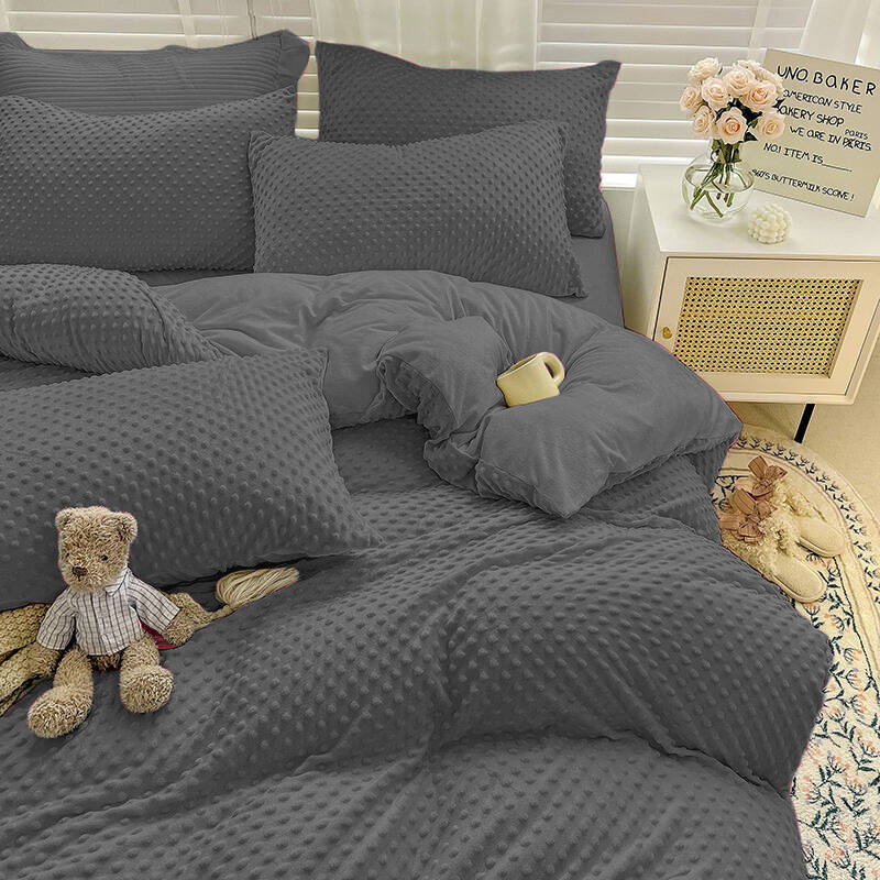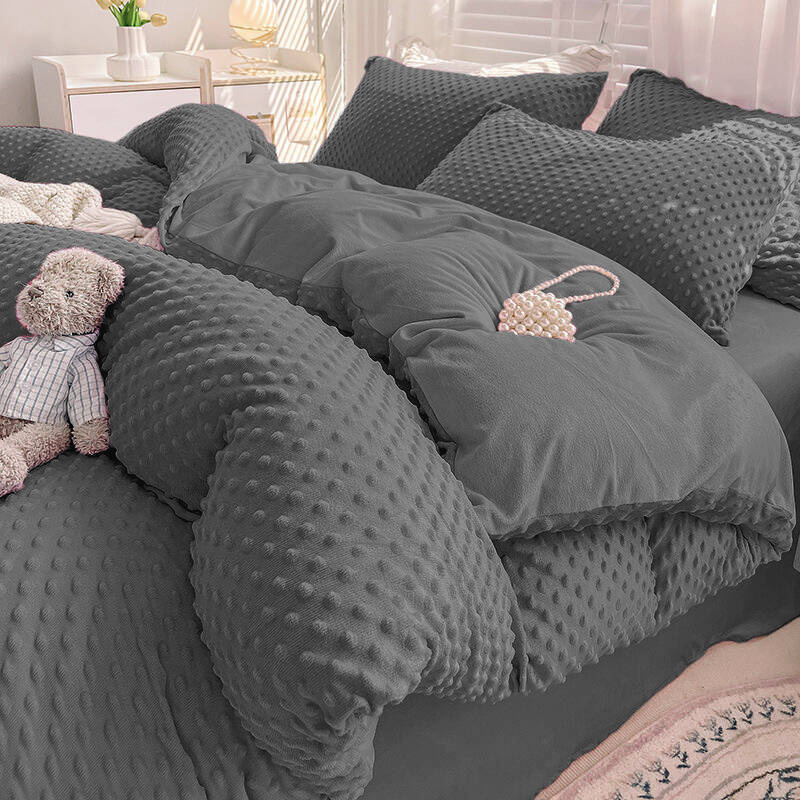 • Komplet pościeli ciepłej zimowej z pluszu, polarowa 160x200, dwustronna poszewka na kołdrę i 2 x poszewka na poduszkę 70x80, pościel ze zdobieniem 3D, w kropki, ciemna szara, grafitowa