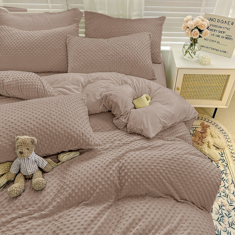 • Komplet pościeli ciepłej zimowej z pluszu, 200x220 polarowa, dwustronna poszewka na kołdrę i 2 x poszewka na poduszkę 70x80, pościel ze zdobieniem 3D, w kropki, ciemna beżowa