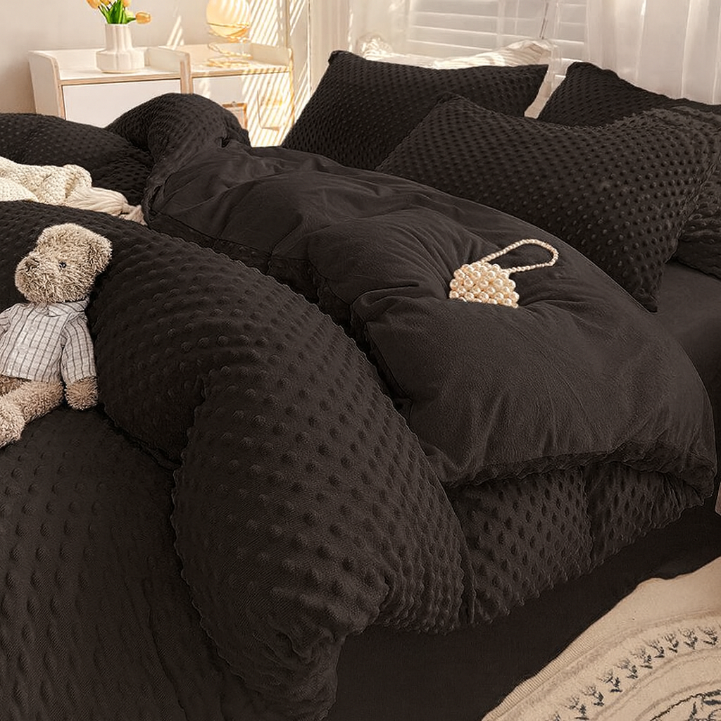 - Komplet pościeli ciepłej zimowej z pluszu, polarowa 200x220, dwustronna poszewka na kołdrę i 2 x poszewka na poduszkę 70x80, pościel ze zdobieniem 3D, w kropki, czarna