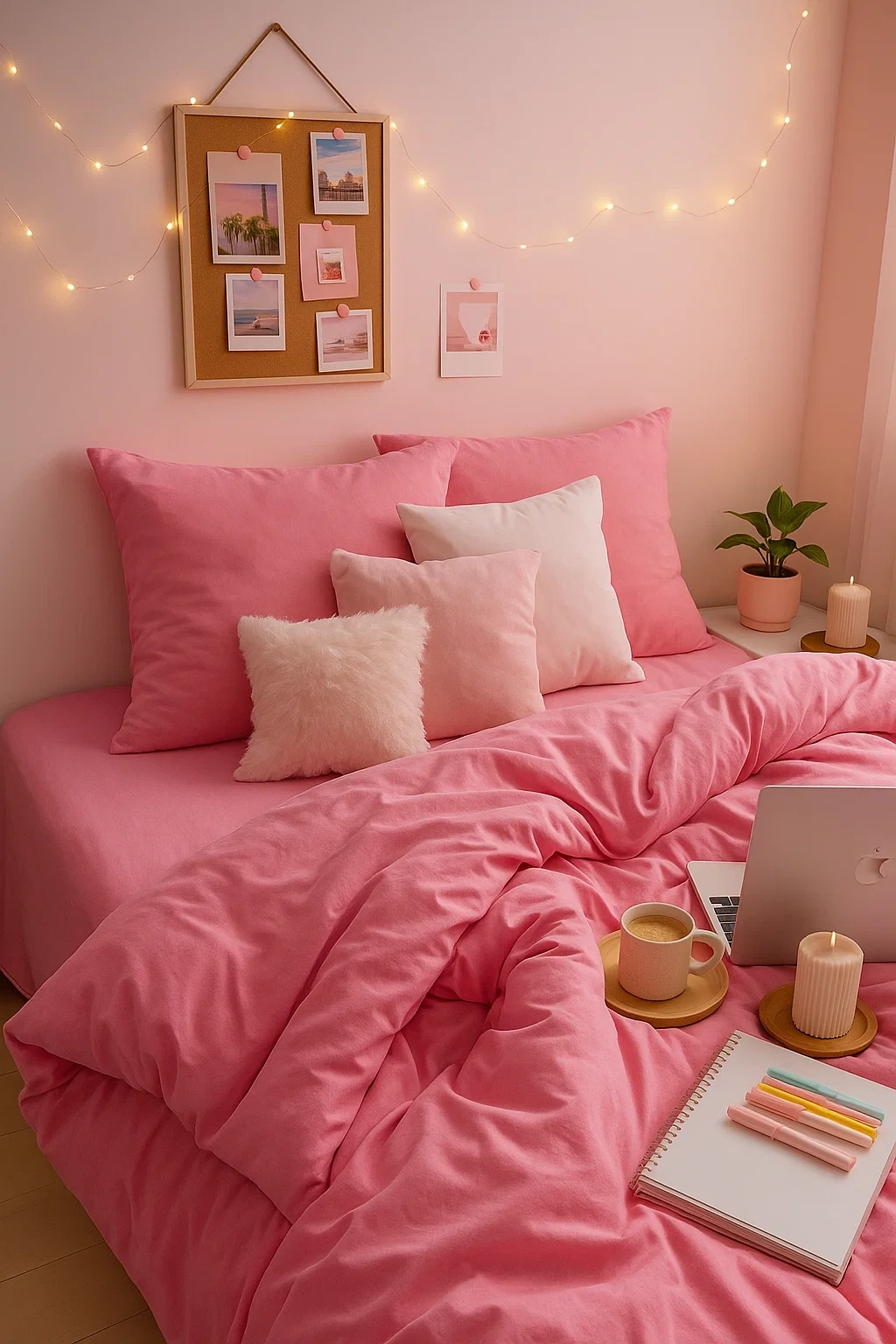 Pasuje do stylistyki: student girl aesthetic, pink college dorm, VSCO girl, clean girl pink edition, TikTok aesthetic.