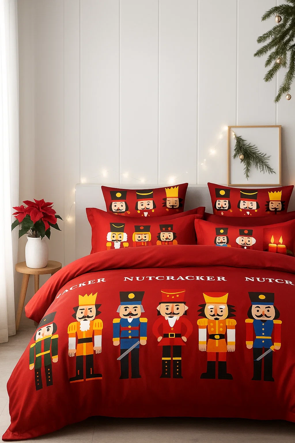 - Stylowa pościel świąteczna w dziadki do orzechów w rozmiarze 160x200! Idealna na prezent na Święta, Gwiazdkę. Zapewnia świąteczny klimat w sypialni.