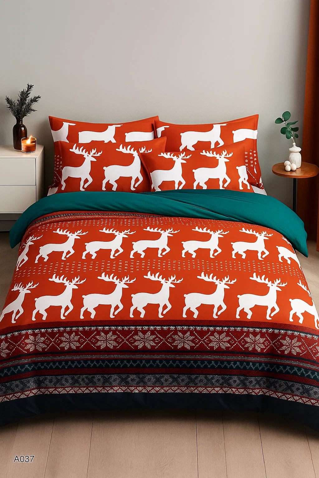 Pościel świąteczna czerwono-zielona 200x220 4 el. A037