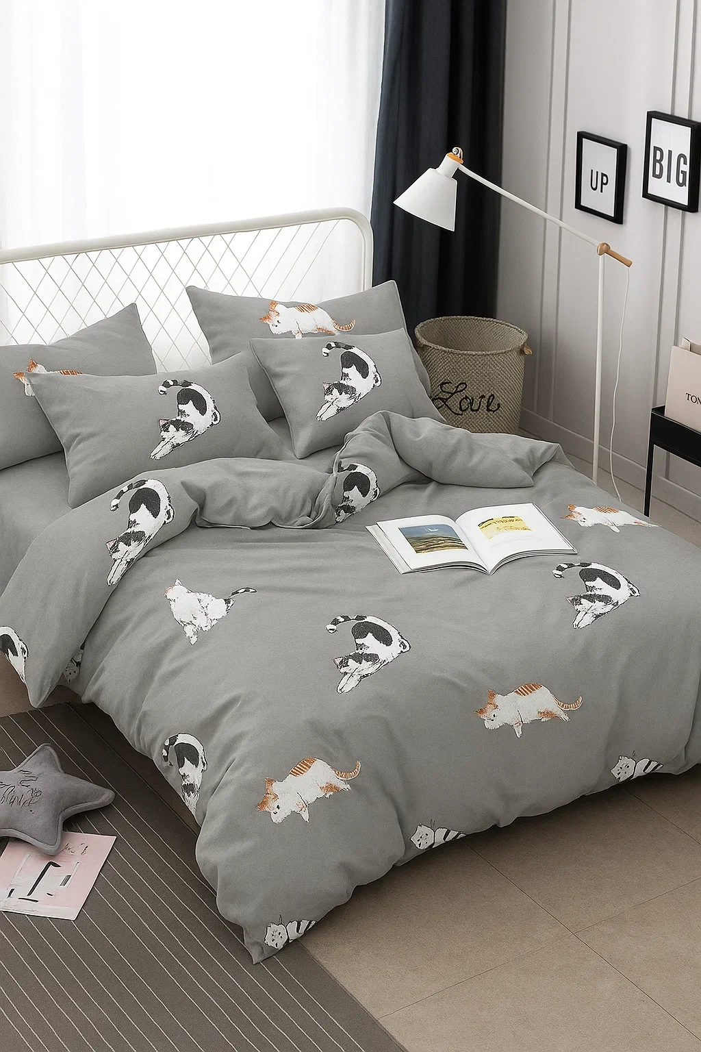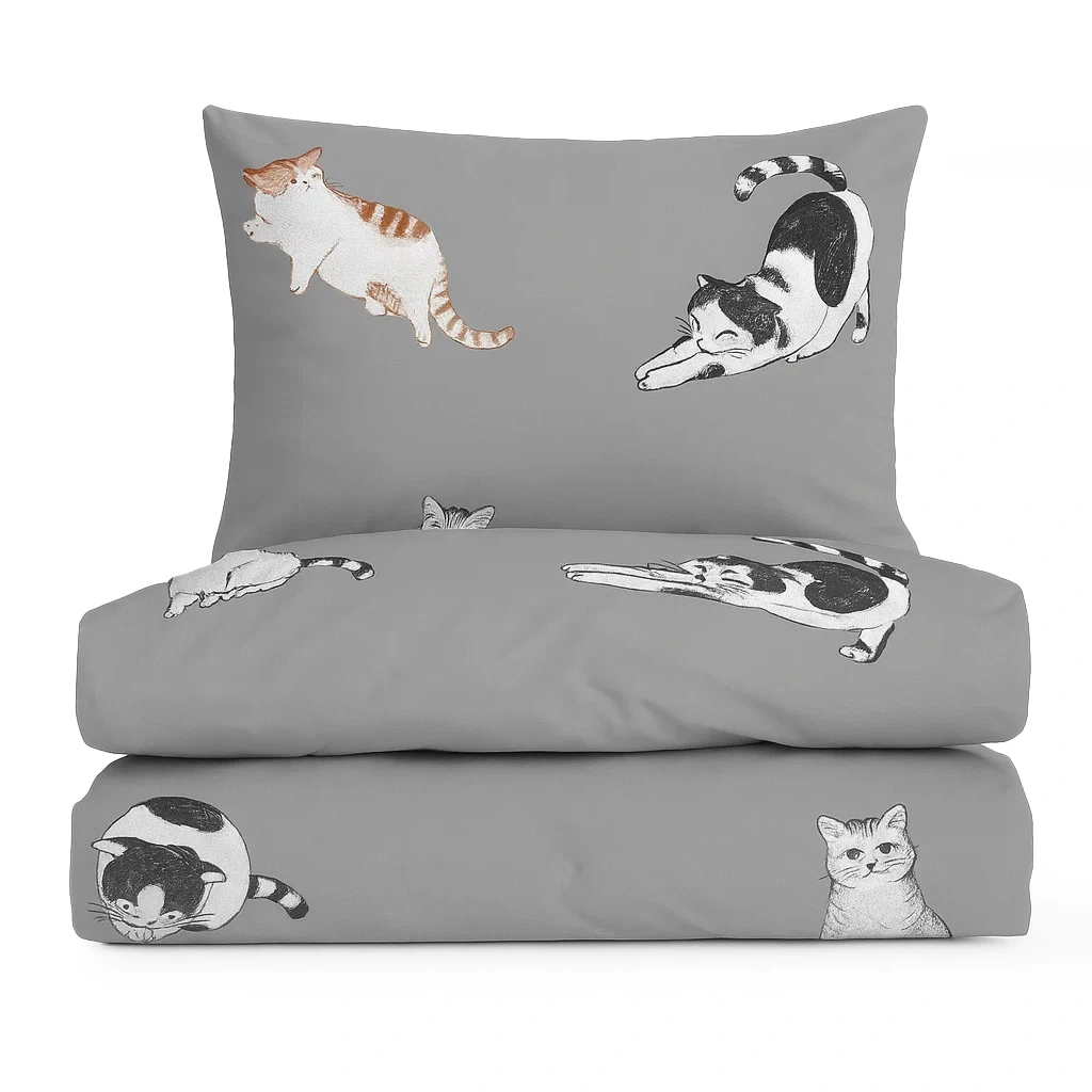 🌙 Komplet pościeli z mikrofibry – elegancki, miękki i idealny dla miłośników kotów
