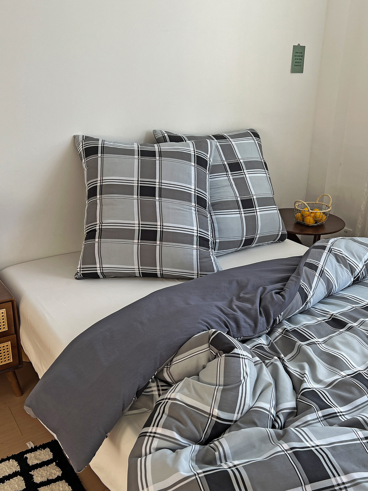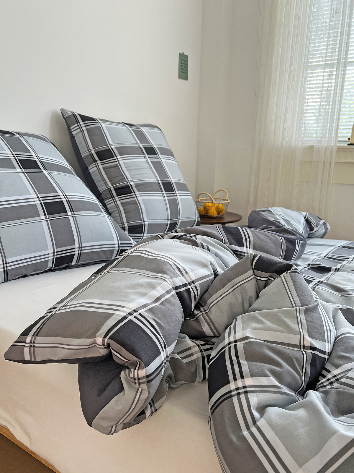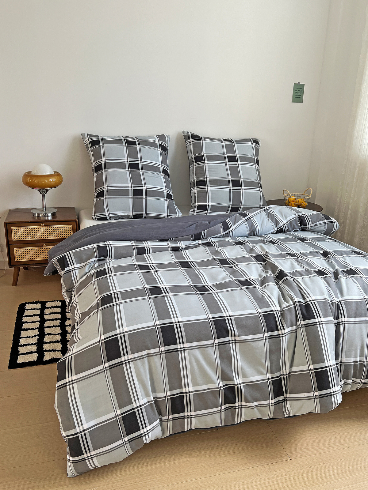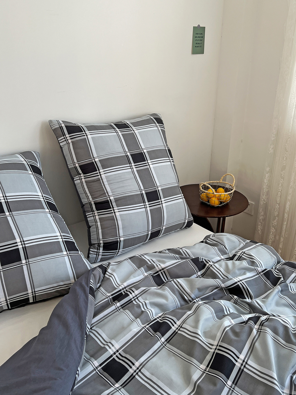 Pościel szara w kratę 160x200 3 el. Nordic F9