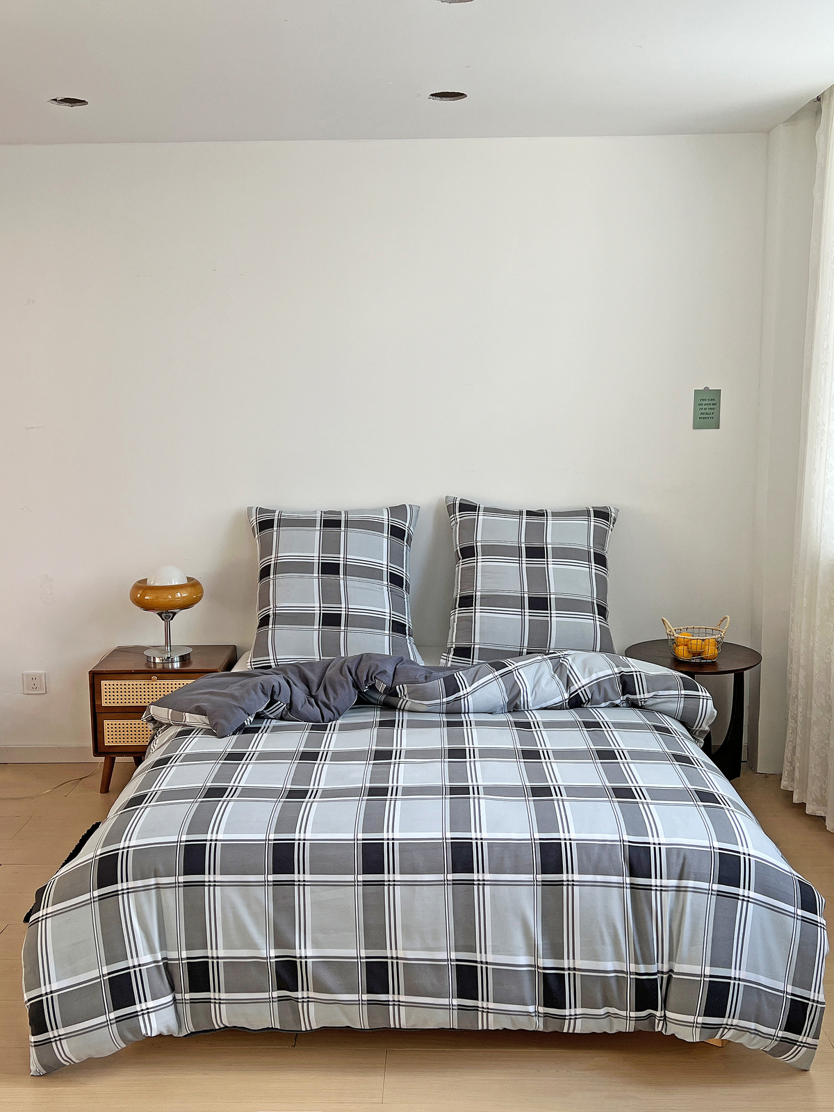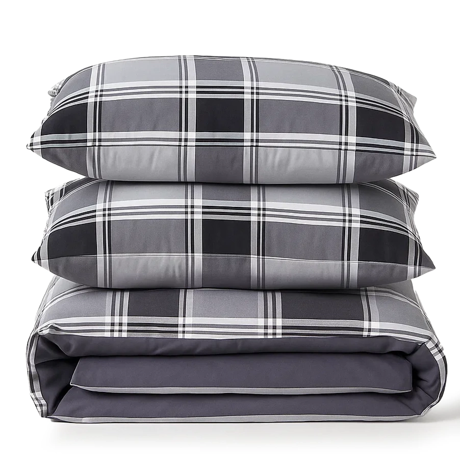 Pościel szara w kratę 200x220 3 el. Nordic F9