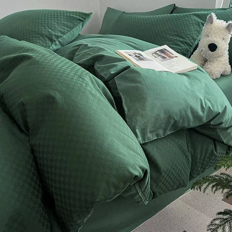 - Komplet zielonej pościeli satynowej 160x200 skład: 100% bawełna syntetyczna, dwustronna poszewka na kołdrę, 2 x poszewka na poduszkę 70x80, pościel gładka, butelkowa zielona w żakardowe ozdobne kwadraty, kratę